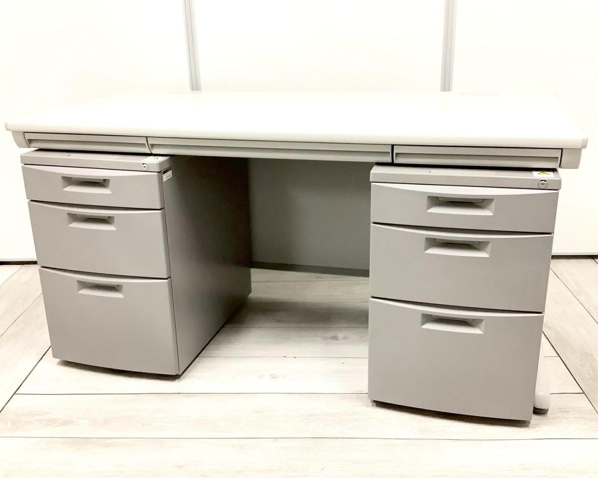 【セット商品(デスク×1台、ワゴン×2台+ チェア×1脚)】【使い勝手の良い3段収納の疑似両袖机!】上長席/役員席 大人気/定番 ◆Okamura/オカムラ ◆SD-V/エスディーブイ ※横浜本店撮影画像※- 横浜本店