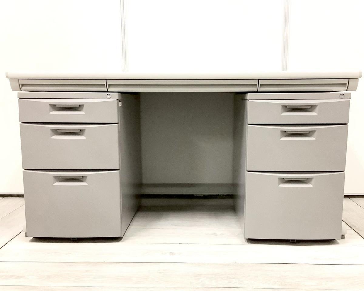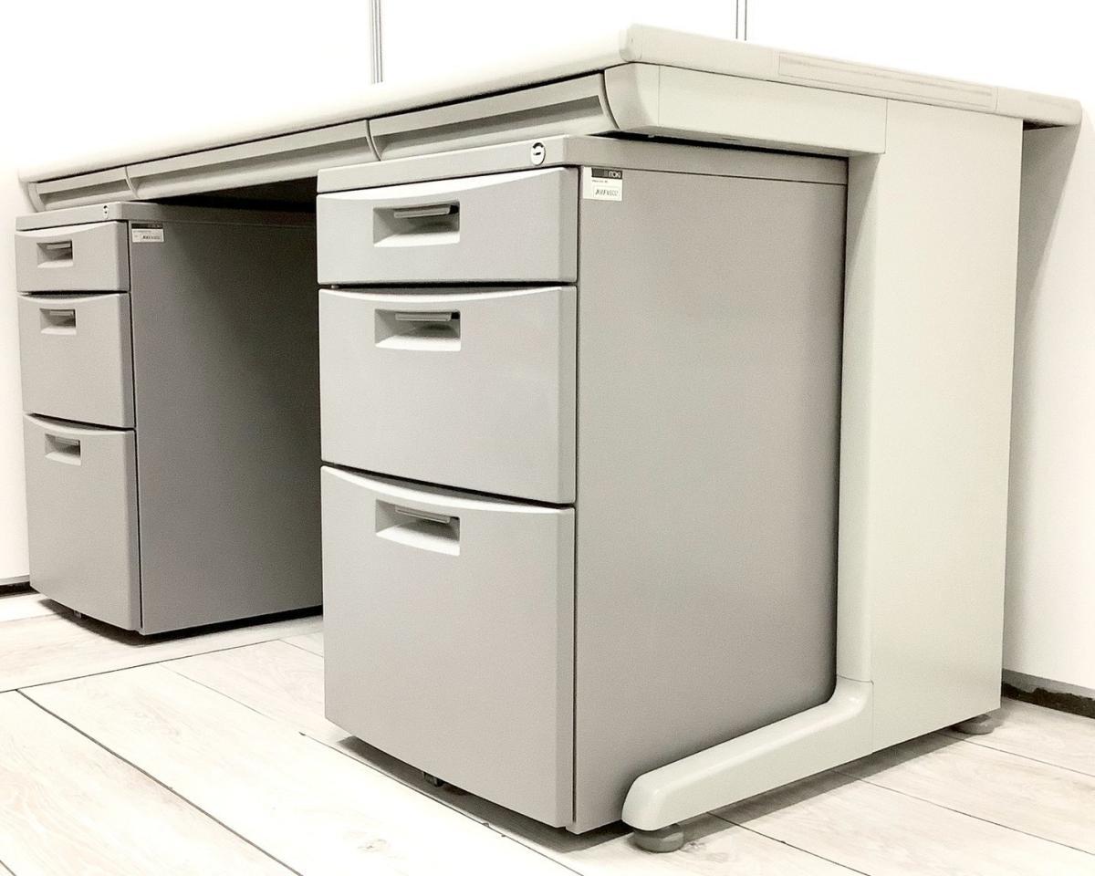 【外部倉庫在庫品】【セット商品(デスク×1台、ワゴン×2台+チェア×1脚)】【使い勝手の良い3段収納の疑似両袖机!】上長席/役員席 大人気/定番 ◆Okamura/オカムラ ◆SD-V/エスディーブイ ※横浜本店撮影画像※【AO】