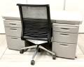 【外部倉庫在庫品】【セット商品(デスク×1台、ワゴン×2台+ チェア×1脚)】【使い勝手の良い3段収納の疑似両袖机!】上長席/役員席 大人気/定番 ◆Okamura/オカムラ ◆SD-V/エスディーブイ ※横浜本店撮影画像※【AO】