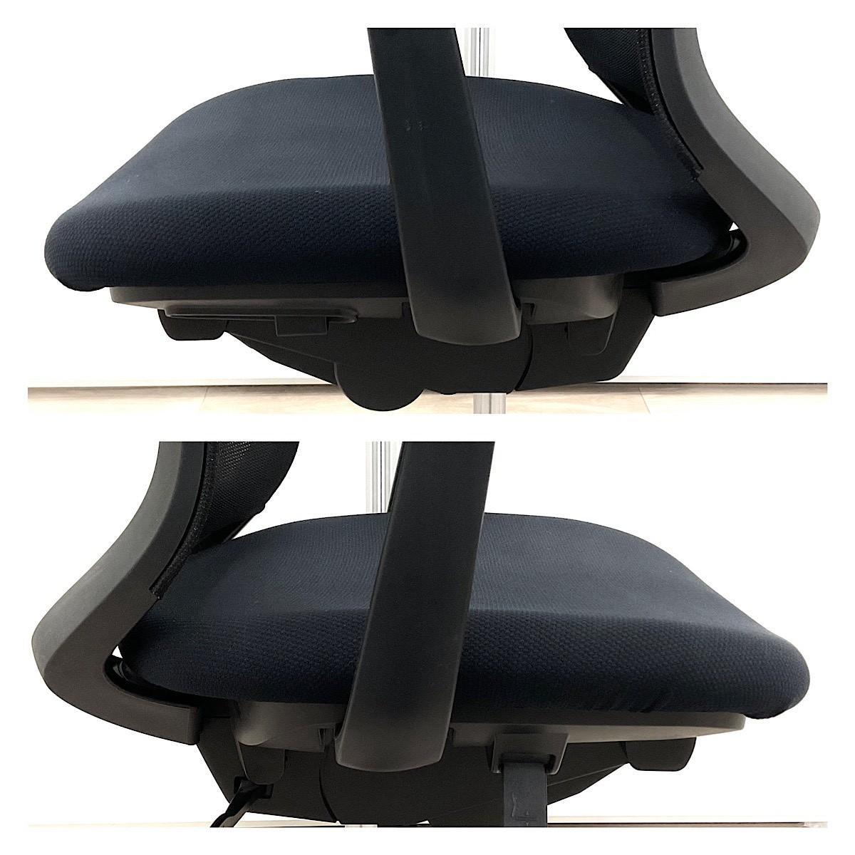 - 座面の高さは上下に90㎜、奥行は前後に50㎜調節可能。さらに骨盤を支えるポスチャーシート採用で着座時の前滑りを防ぎます。