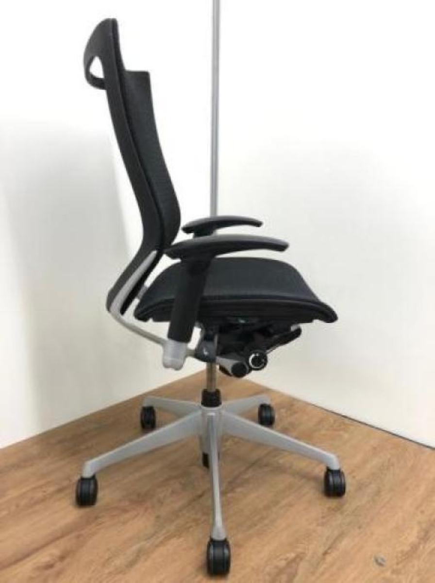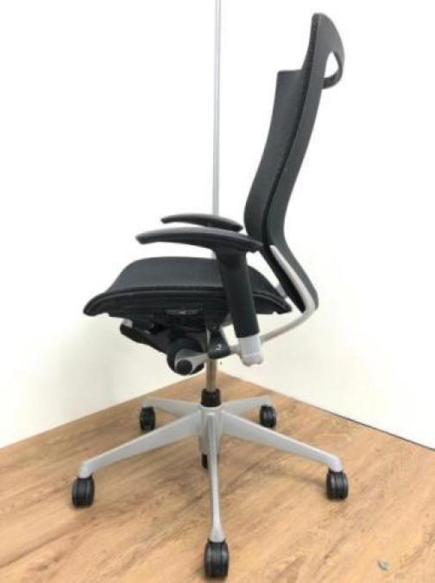 【限定1脚】人気のヘッドレスト付!数量限定入荷!【良い椅子は腰を守る投資です!】■オカムラ バロンチェア 可動肘付 ブラック ヘッドレスト付 座面メッシュ シルバーフレーム ハンガー付 ■上質な座り心地を体感できます!