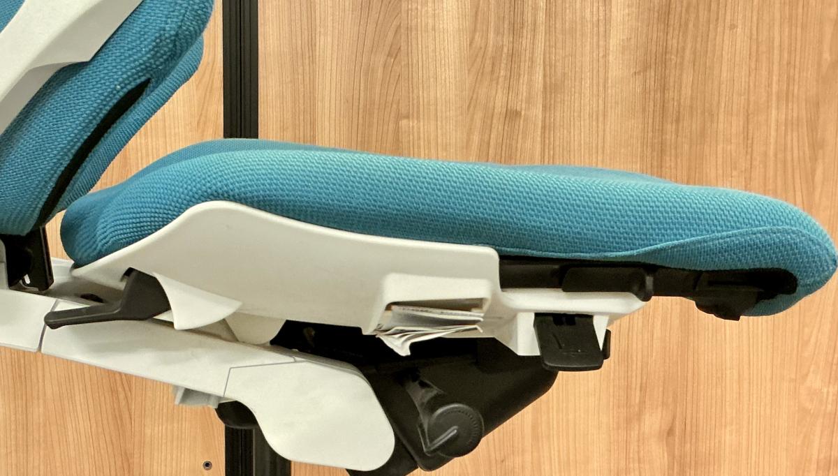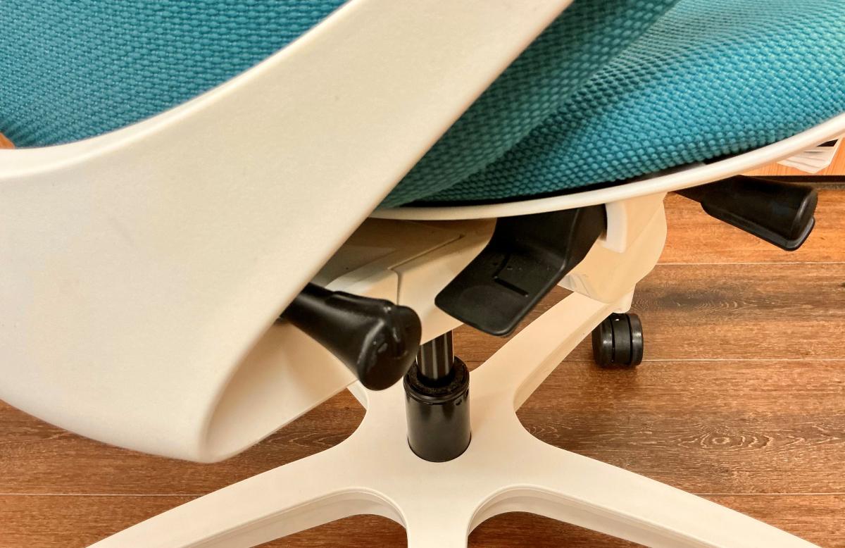 座面下のレバー操作により、体格に合わせたポジショニング設定が座った状態で可能。