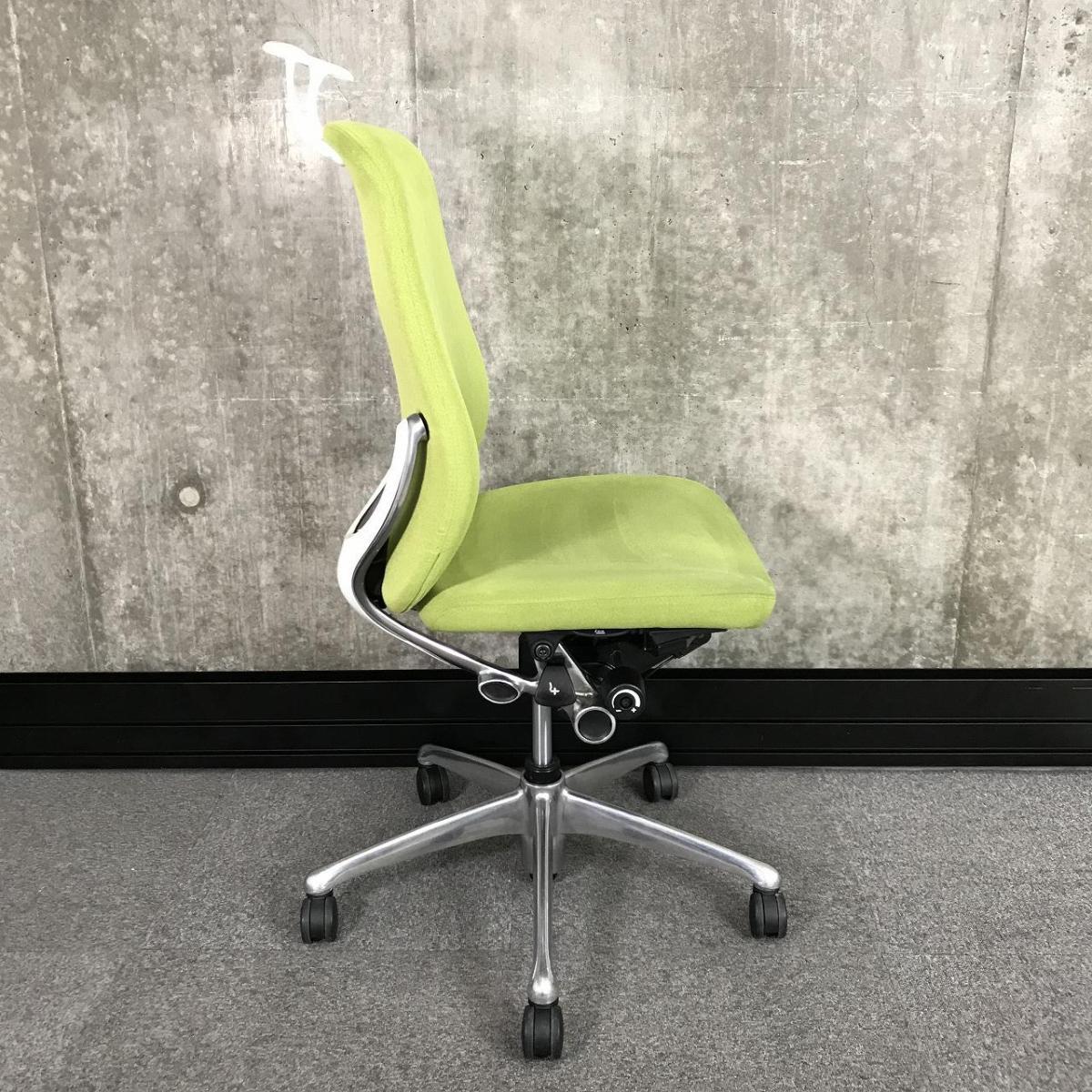 【人間工学に基づいた快適な座り心地!体の動きを自然にサポート!】 ■オカムラ(okamura)製 ゼファーチェア (Zephyr) ハイバック 肘無し ■背面クッション ■グリーン ■コートハンガー付き- つくば店