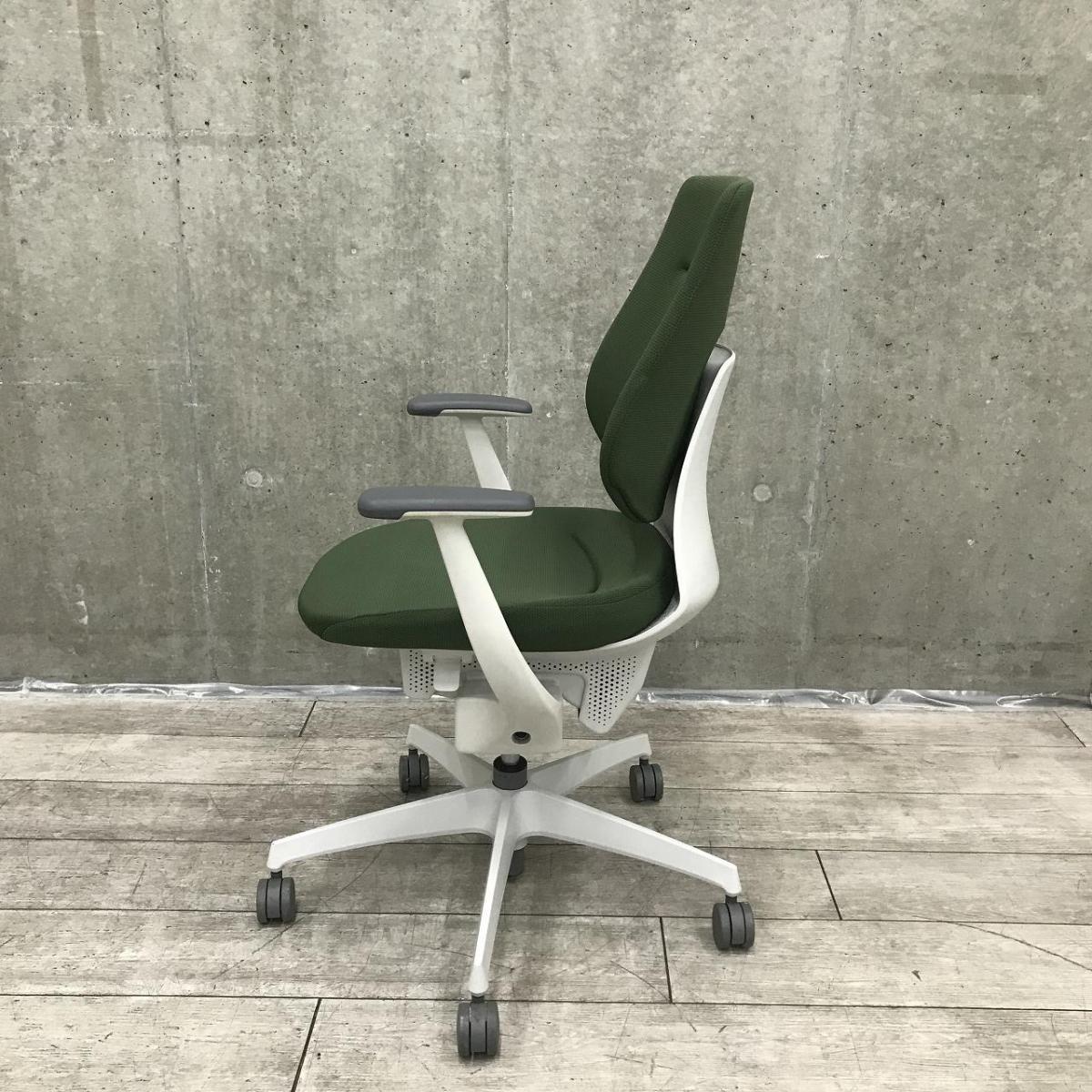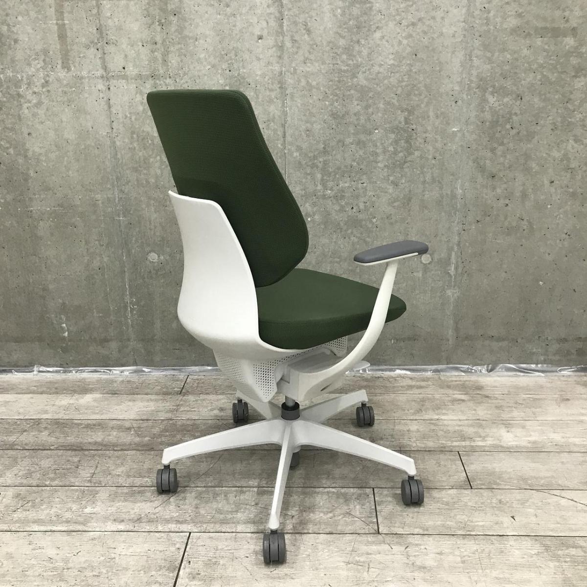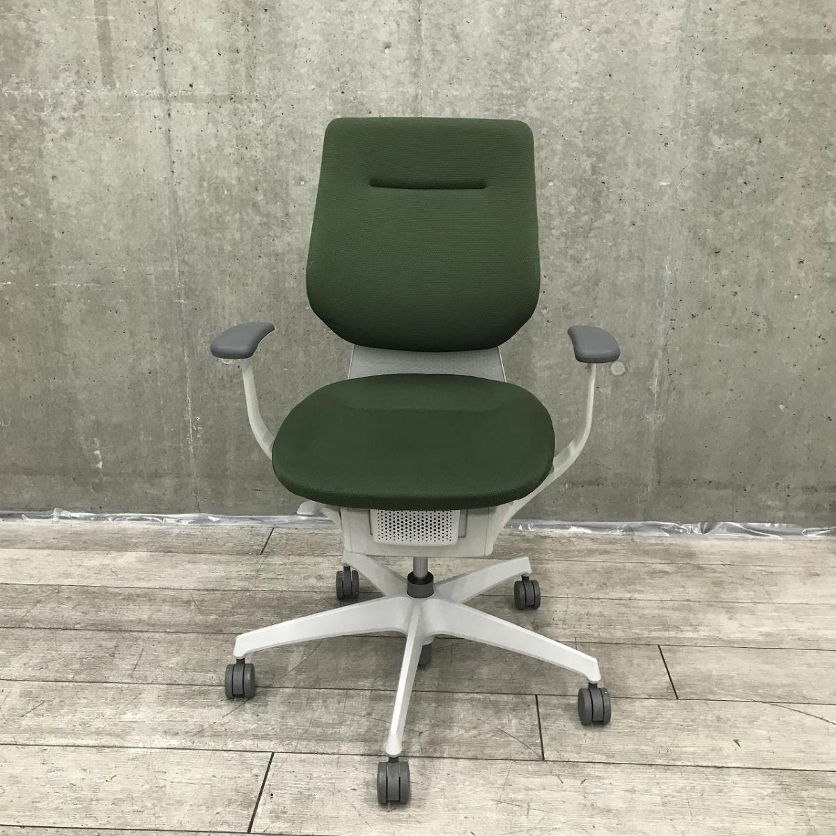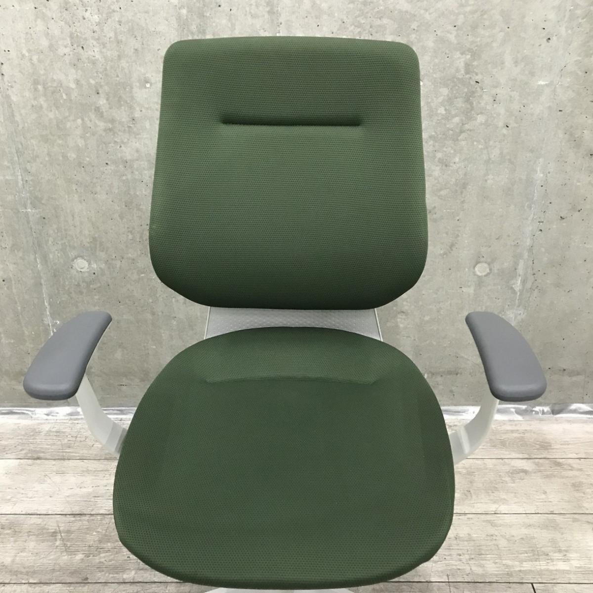 【イスとひとつになれる新感覚!揺れ動く座面で体幹も整える!】■コクヨ(KOKUYO)製 イングチェア(ing) 肘付き ハイバック ■バーチカルタイプ クッション ■固定肘 ■ダークグリーン【弊社使用欄:A01044158】