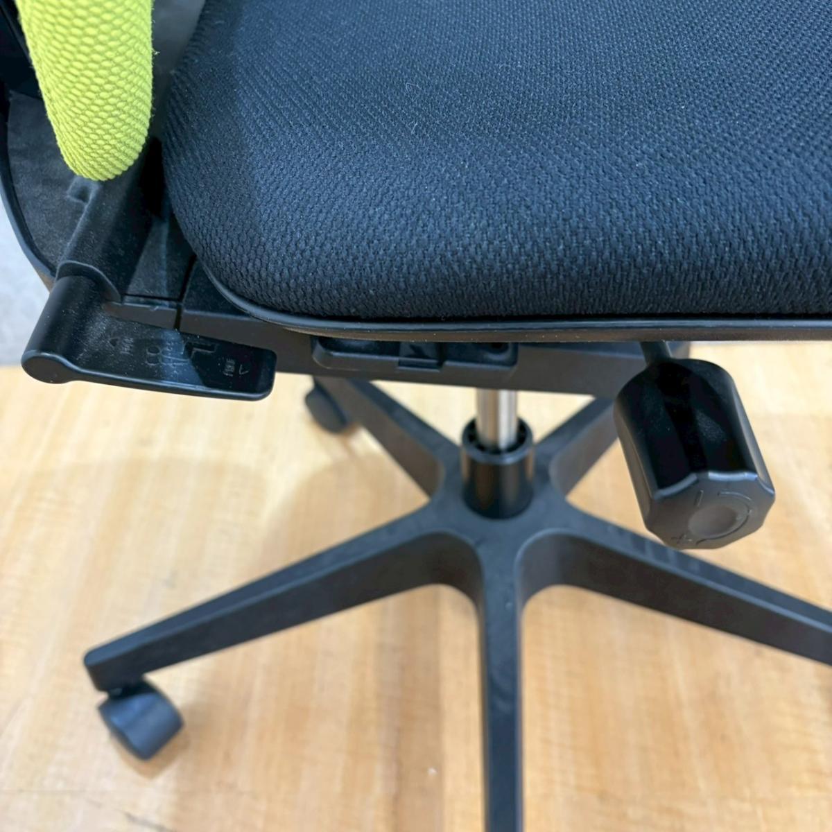 例えば、座面は、イトーキ独自の"ベンディングシート"という機構により、クッション、インターシェル、空洞という三層構造になっています。 この真ん中に挟まっているインナーシェルが、着座時の姿勢に合わせて体重を分散してくれるので、どんな姿勢でも体になじみ、疲労を軽減してくれます。 さらに、座面は前後に4センチほど奥行きを調整でき、前傾姿勢で座りたい、深く腰掛けたい、膝裏を圧迫されたくないなど、個人の好みに合った快適さにカスタマイズが可能となっています。