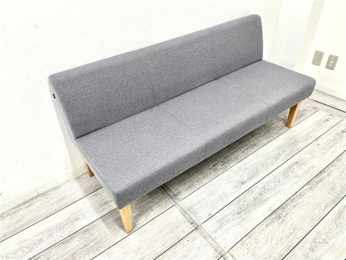 【定価約14万円】【休憩スペースや待合室などにおすすめな3人用ソファ!】■オカムラ LB55 ■3人掛け ■グレー(木脚)- 在庫数