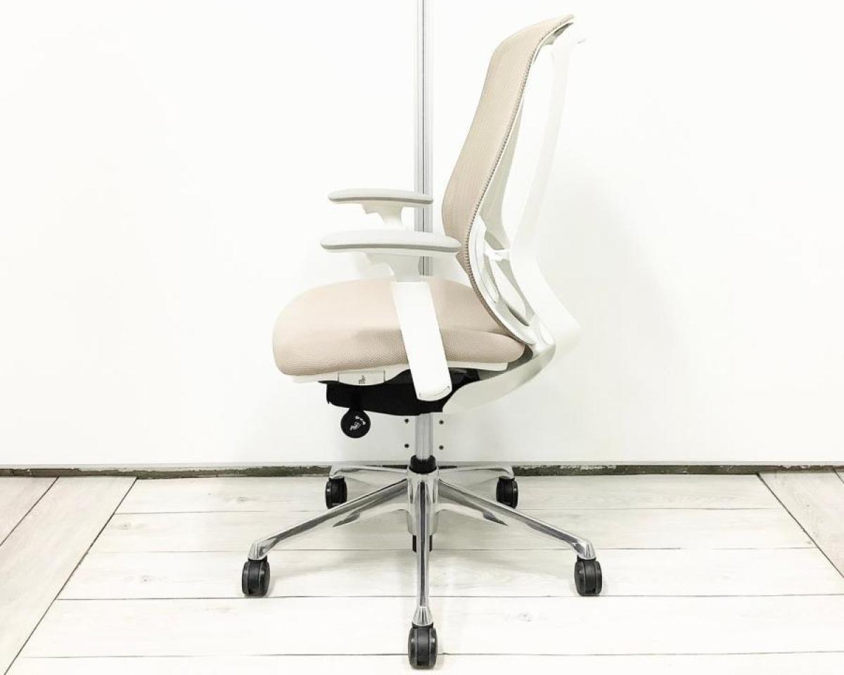 【外部倉庫在庫品】前傾機能チェアの代名詞が大量入荷中!おすすめの大人気チェア! ■オカムラ/シルフィーメッシュ/ベージュ ホワイトボディ アジャストアーム アームレスト付 【AO】【TOGS】