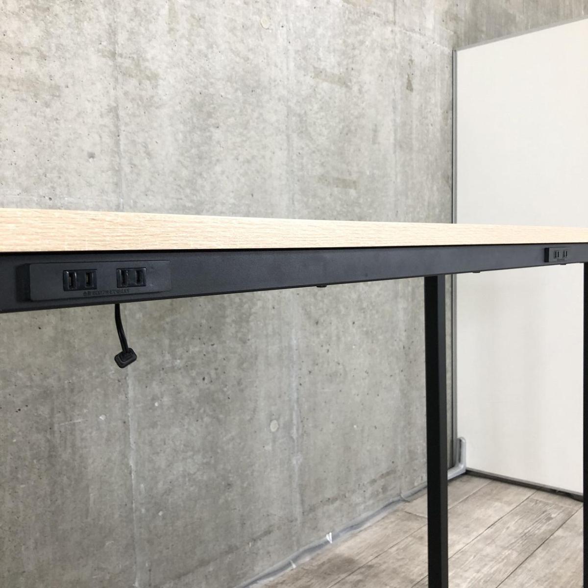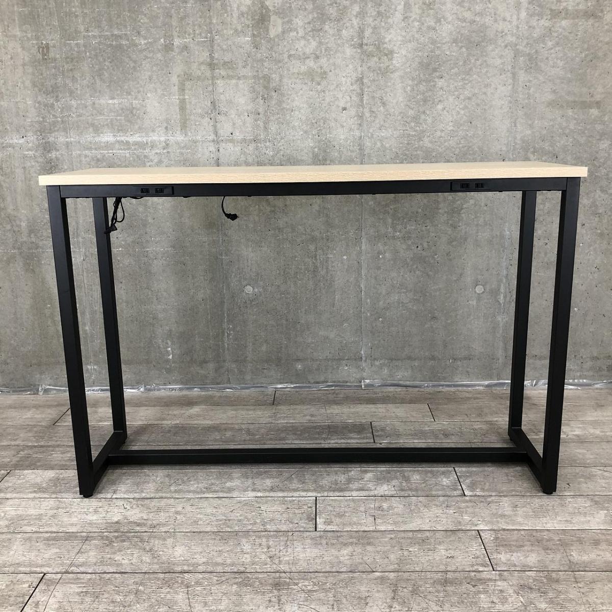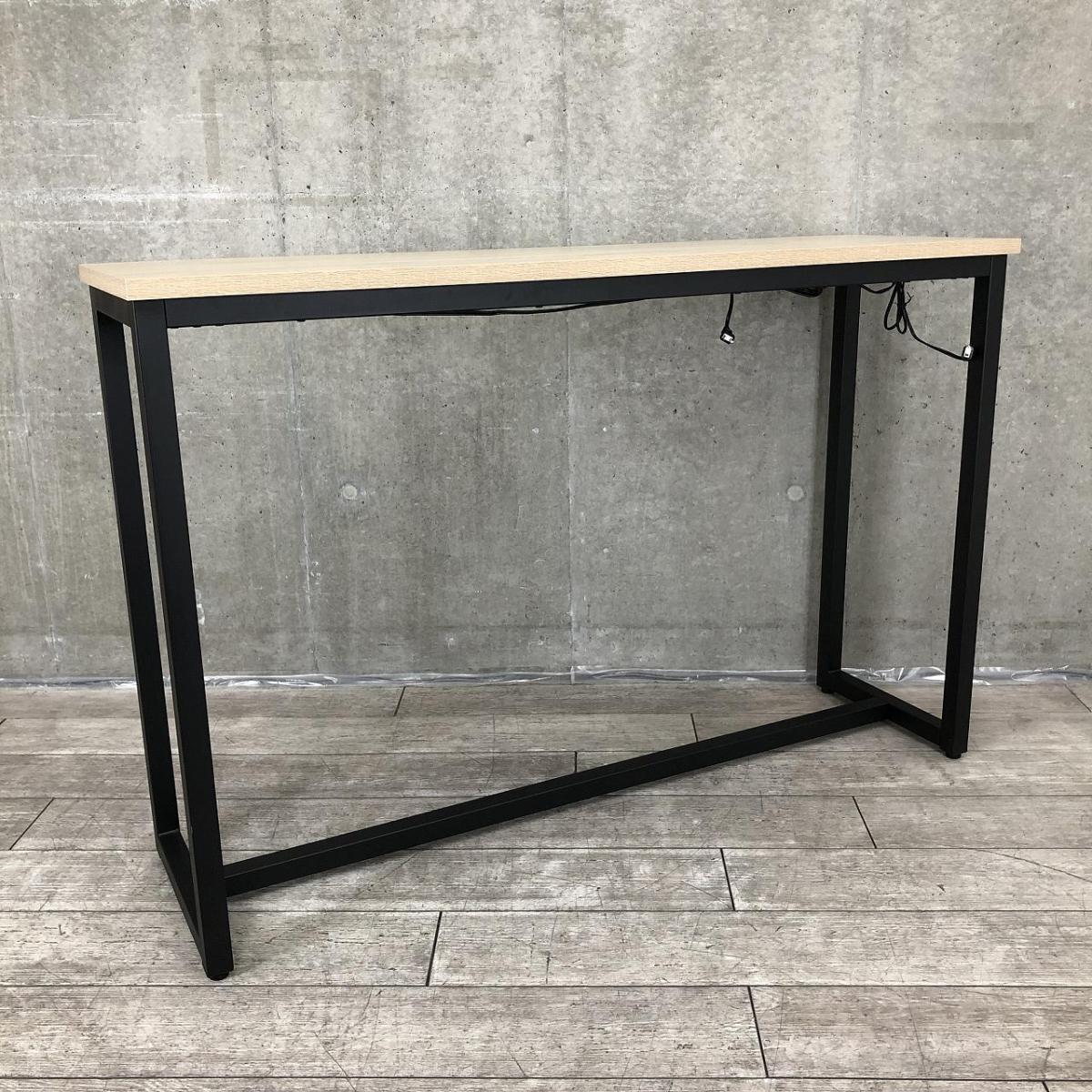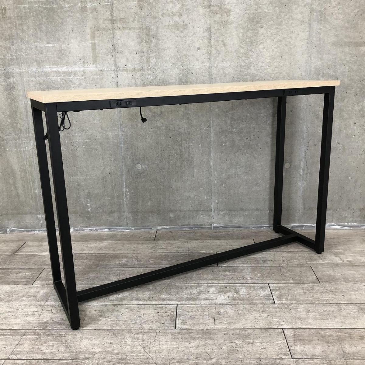 【コンセント付きハイテーブル!】■アスプルンド製 ハイテーブル ■W1500×D450×H1000mm ■電源タップ付き ■木目調の天板とブラックフレーム- つくば店