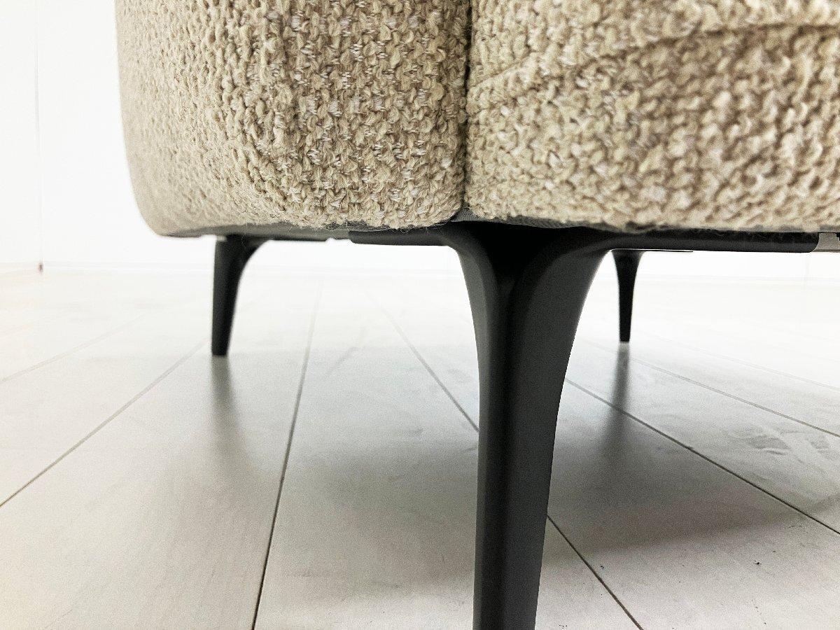 細身のブラックレッグが全体を引き締め、ボリューム感と軽快さのバランスを両立。リビングのアクセントとしてはもちろん、書斎やベッドルームにも取り入れやすい、実用性とデザイン性を兼ね備えたアームチェアです。
