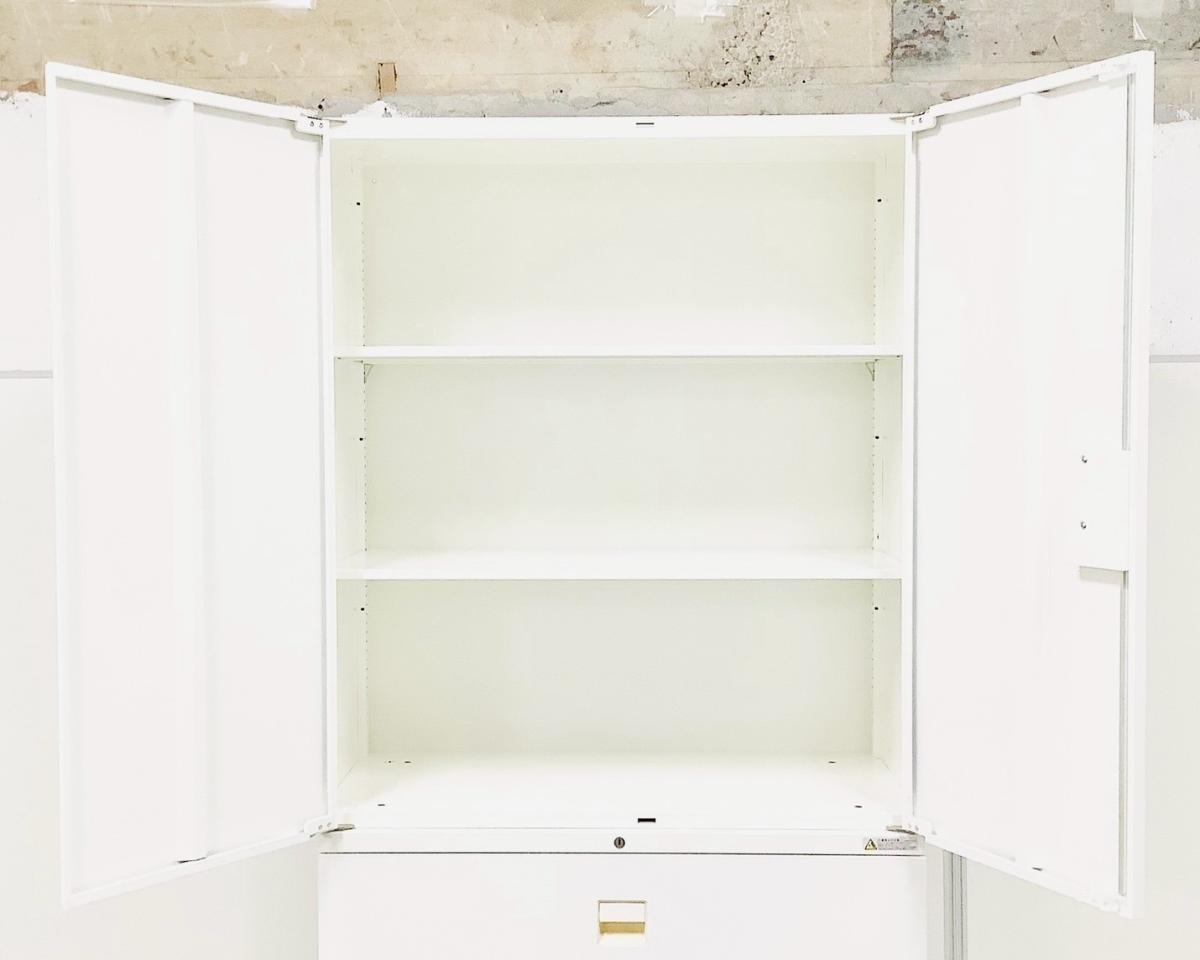 【訳アリ品】【収納量抜群の書庫セット!観音開き+引き出しタイプの人気の組み合わせ!】■オカムラ製 SAデュオライン 両開き+3段ラテラル 書庫セット ハイキャビネット ■ホワイト ■シリンダー錠
