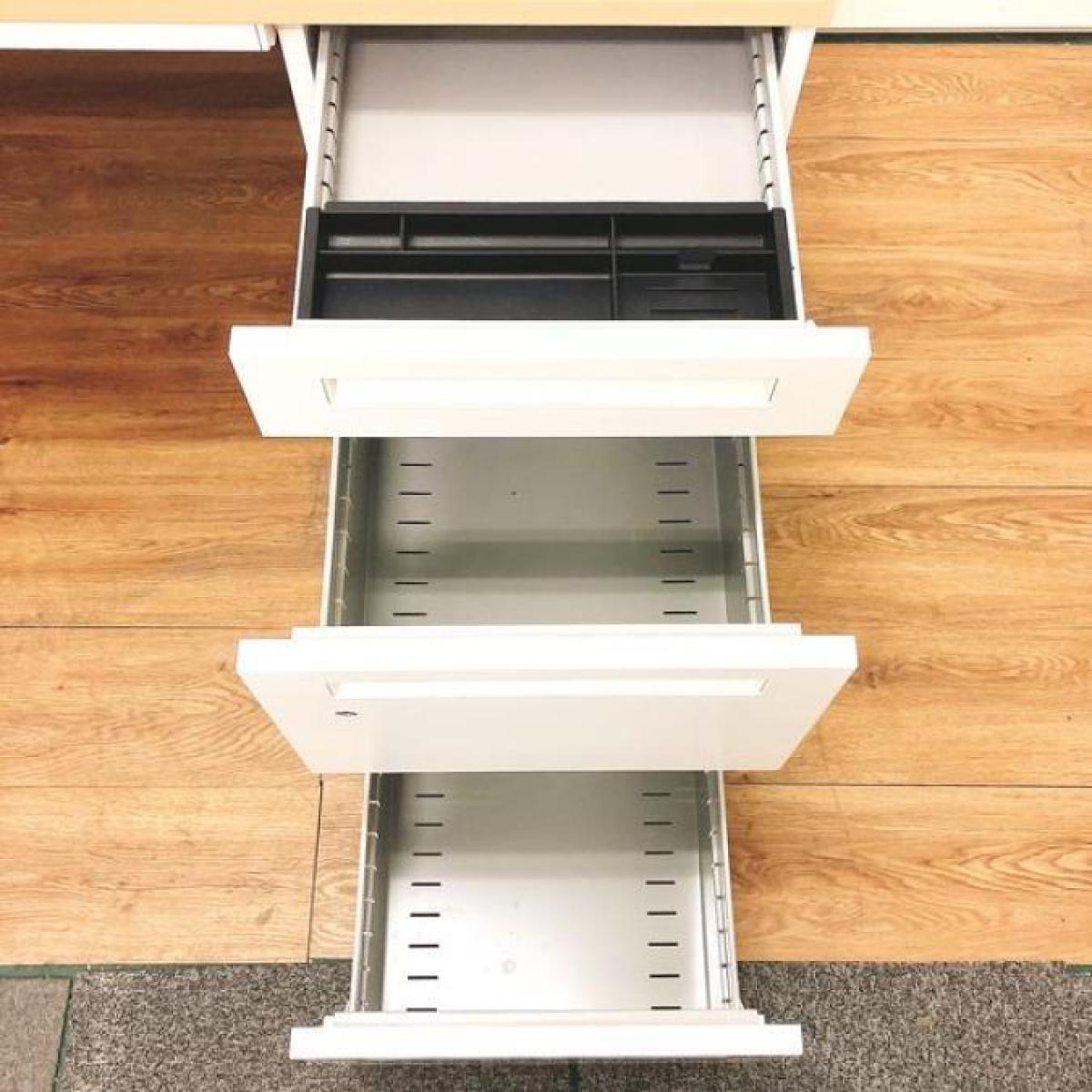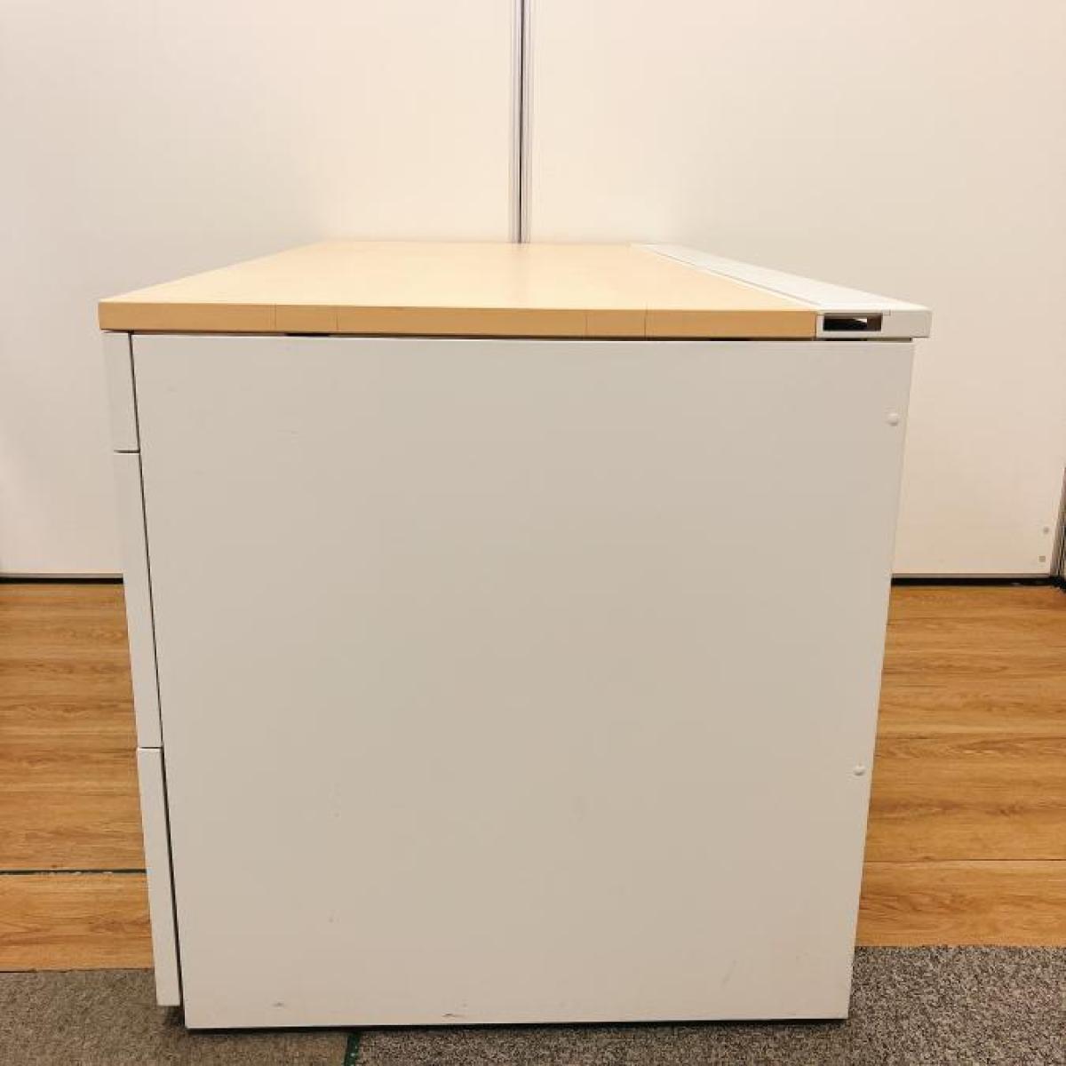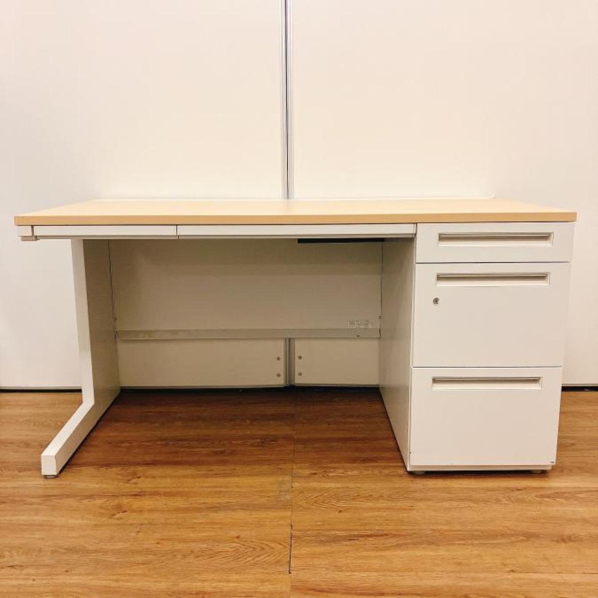 【横幅1400サイズ】内田洋行/スカエナ/片袖机/天板ナチュラル:本体ホワイト/シリンダー錠- 春日部・越谷店