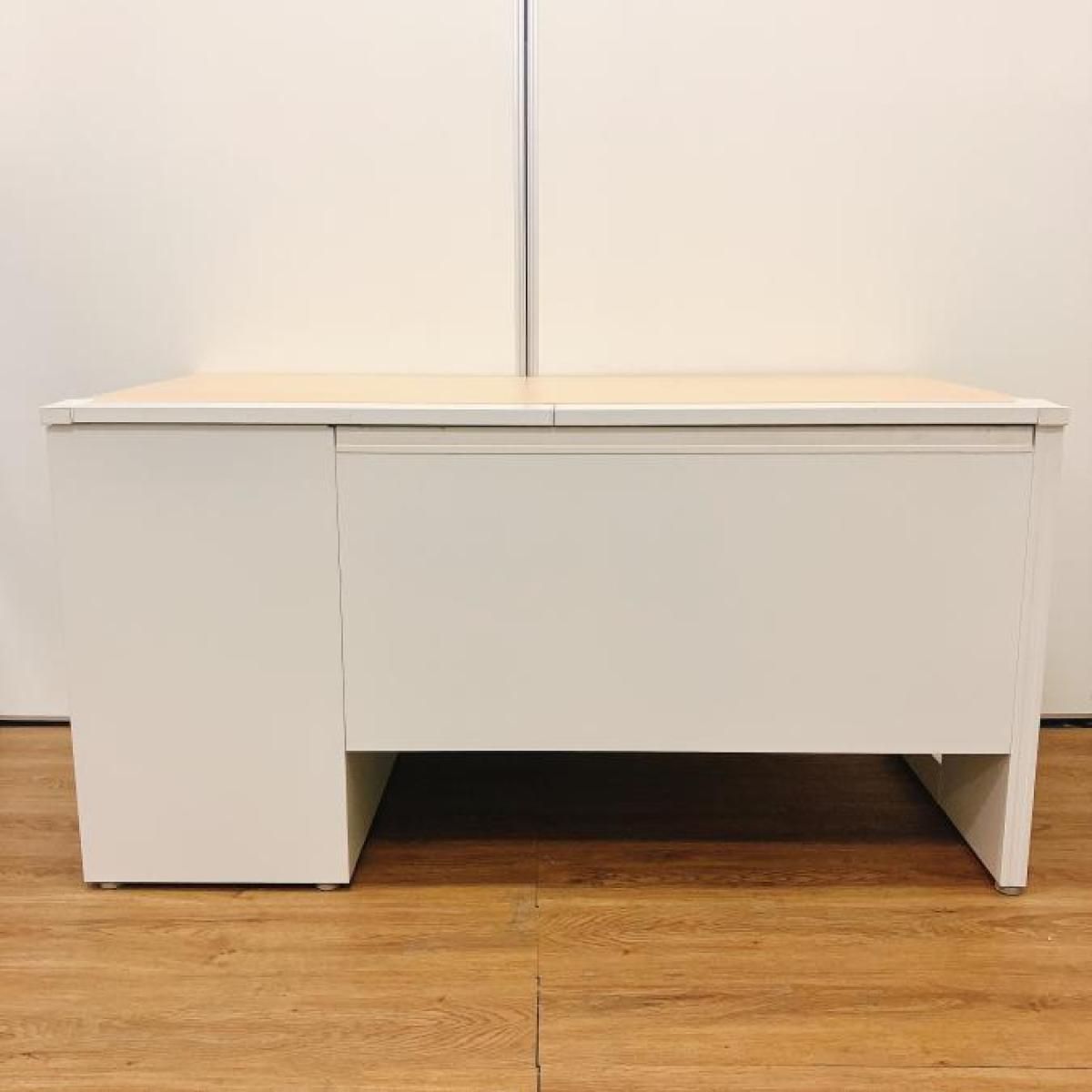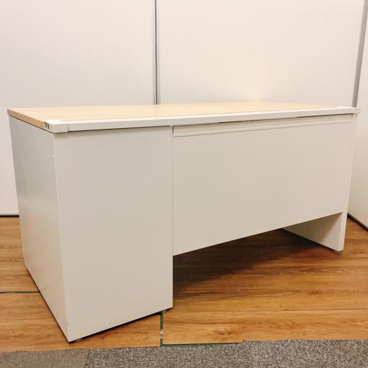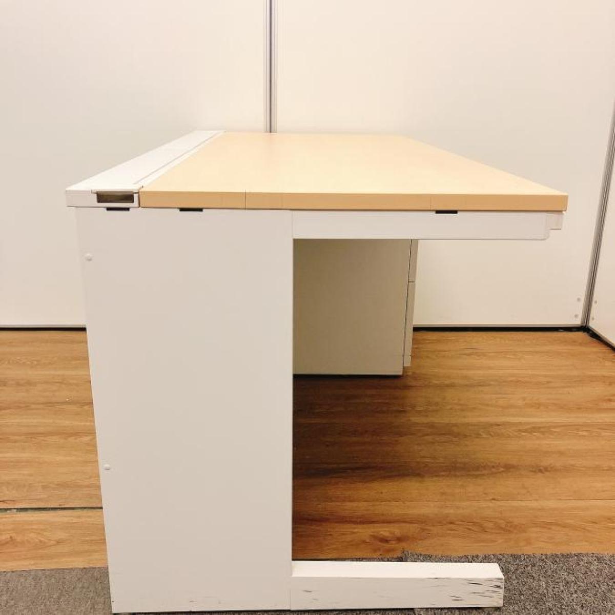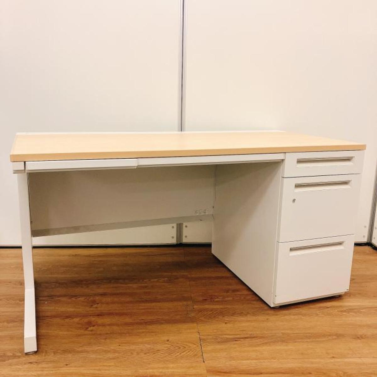 【横幅1400サイズ】内田洋行/スカエナ/片袖机/天板ナチュラル:本体ホワイト/シリンダー錠- 春日部・越谷店
