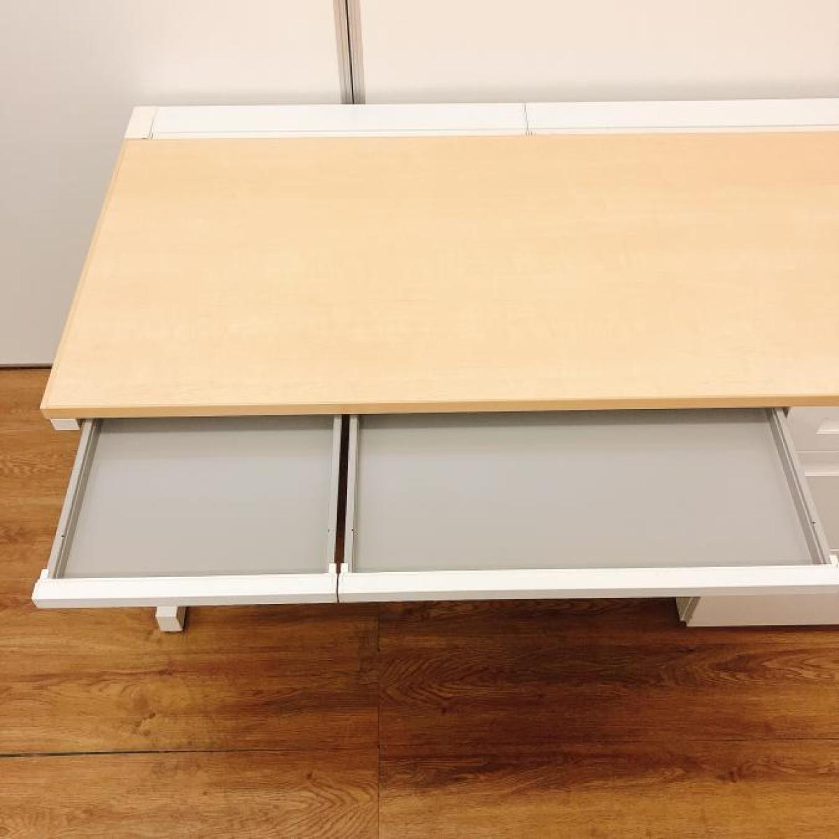 ホワイトとナチュラル木目のオフィスデスクとなります。
