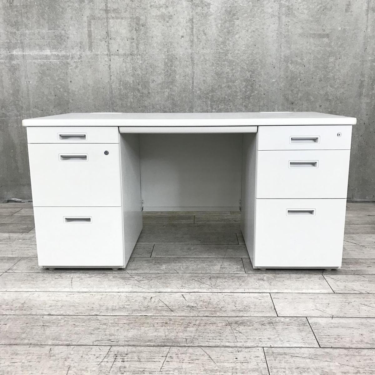 【収納スペース充実・机上をスッキリ整理!上長席にもオススメ!】/オススメ(おすすめ) /人気商品【弊社使用欄:A01031542】■両袖机 W1400×D700㎜ ■シリンダー錠 ■ホワイト ※サイド割れ・日焼け有/東洋スチール(TOYOSTEEL)製 CSシリーズ