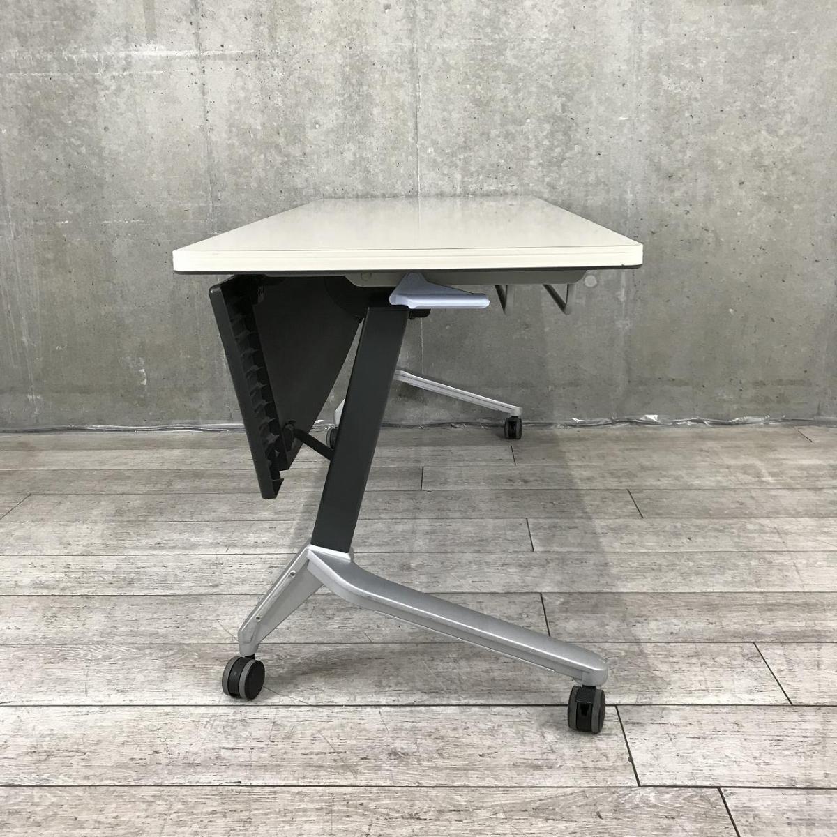 【折りたたみテーブル!キャスター付きで便利に使えます!】■コクヨ(KOKUYO)製 KT-620シリーズ サイドスタックテーブル ■W1800×D450×H700mm ■幕板パネル付 ■ナチュラルグレー