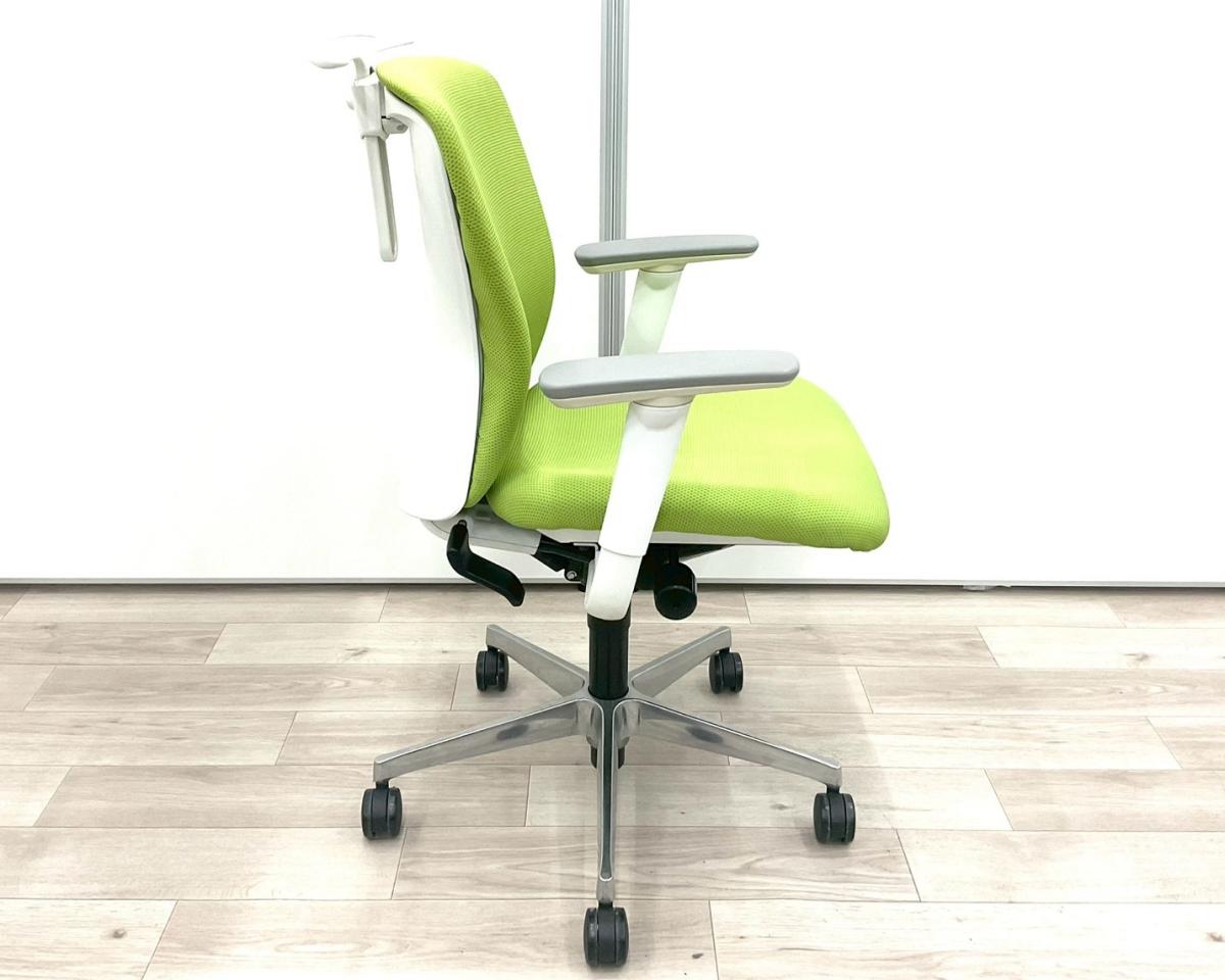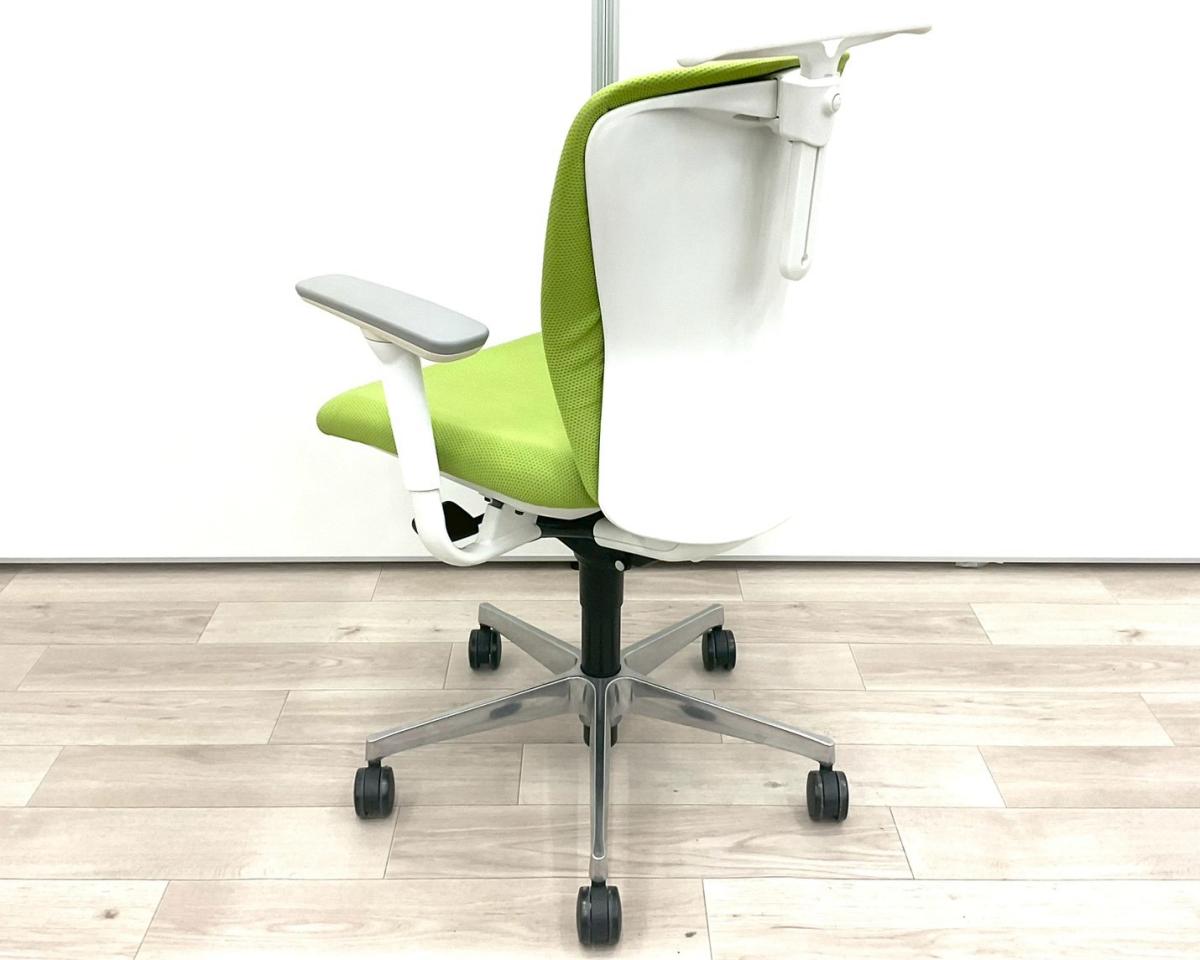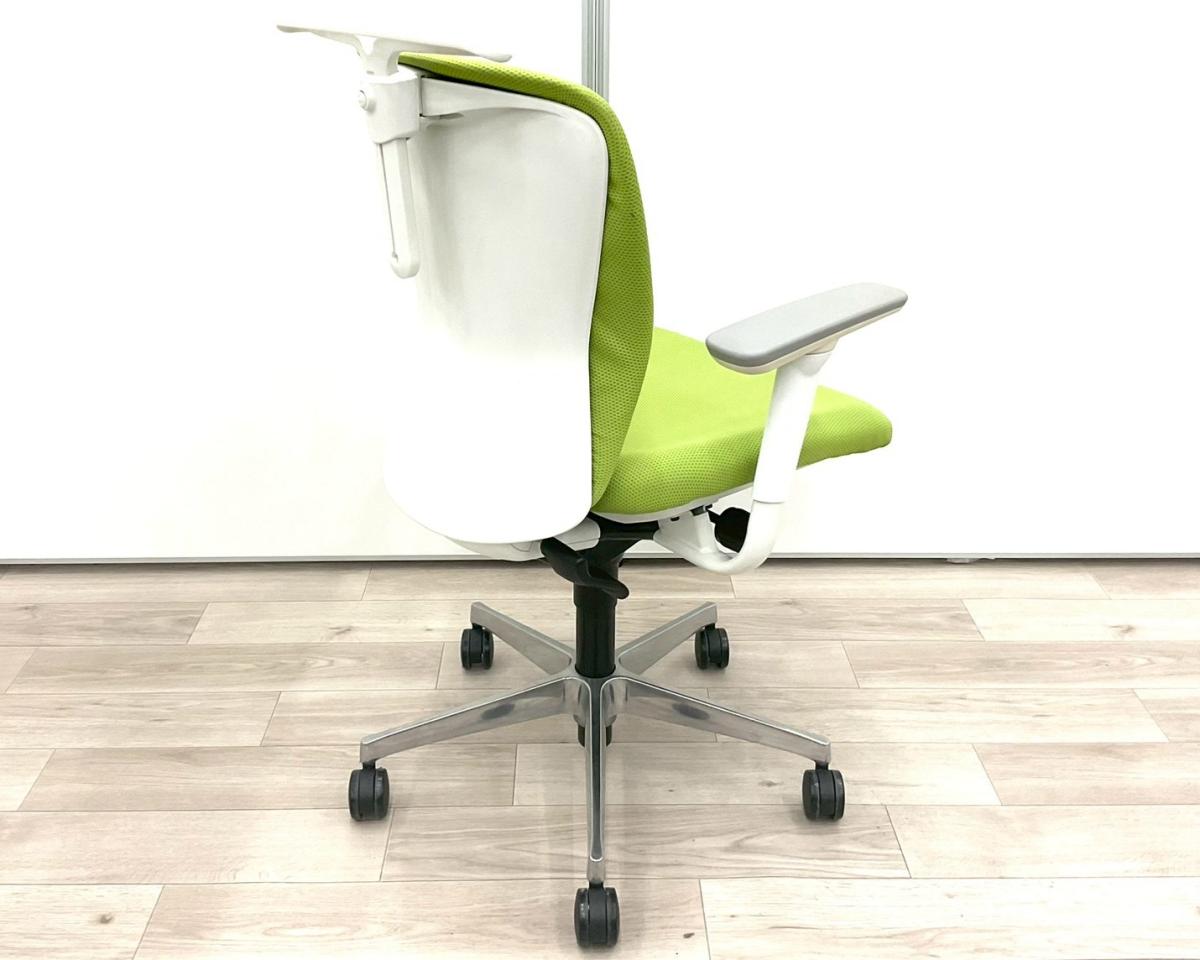 シンプルなデザインと厚みのあるクッションが大人気!機能充実のおすすめワーキングチェア ■オカムラ/スラート(sulato)/ライムグリーン×ホワイトシェル 可動肘付き
