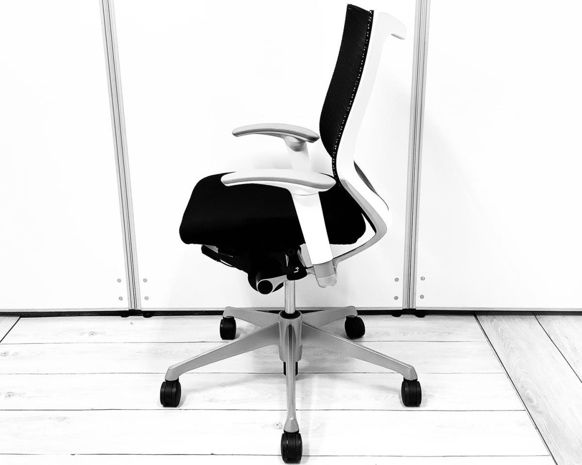 ■Okamura/オカムラ ■バロン(Baron)チェア ■ブラック×ホワイトシェル ■肘付き/固定肘 ■ローバック ■背面/メッシュ ■オススメ/大人気/定番商品【弊社使用欄:A01048432】