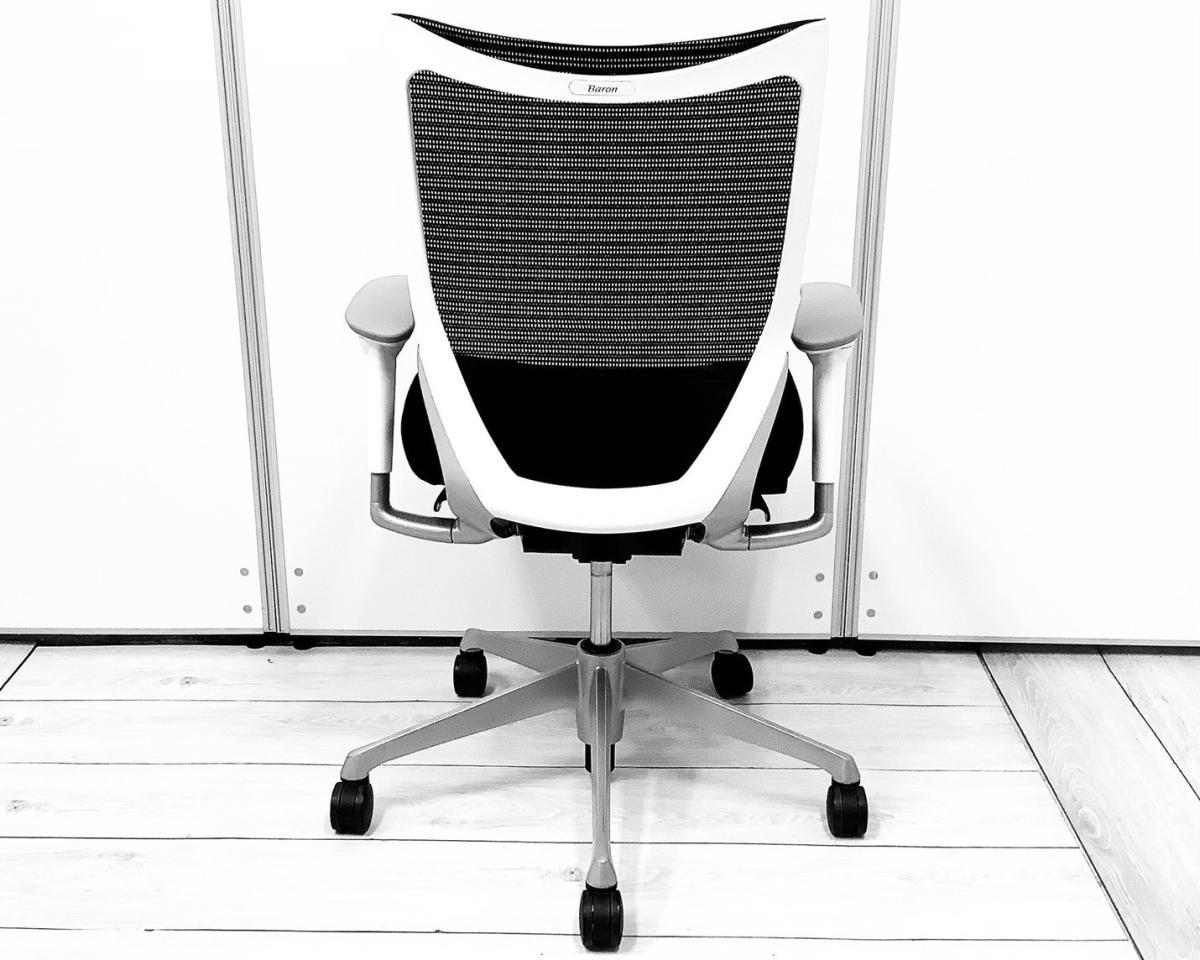 【国産メッシュチェアの代表格!オフィスの執務室、会議室におすすめ!】■オカムラ(okamura)製 バロン(Baron)チェア 肘付 ローバック 背面メッシュ ■固定肘 ■ブラック×ホワイトシェル【AD】