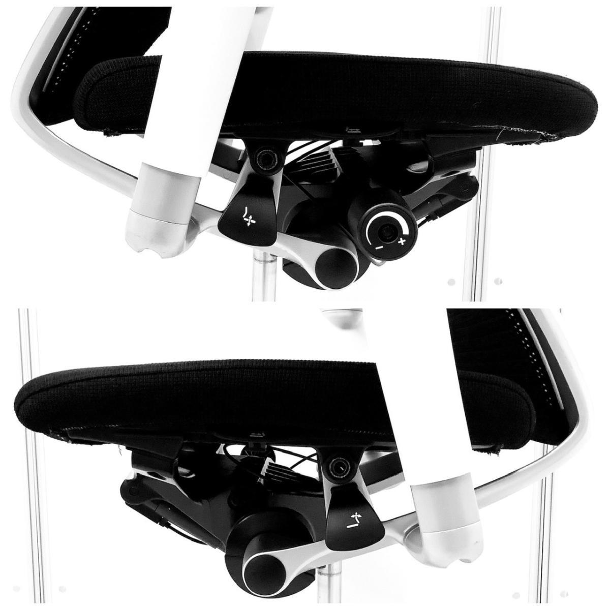 もちろん座り心地もコンテッサの直系ですから快適です。座面の素材はクッションとメッシュの2タイプあります。私、個人的には座面の中心部分でも外側でもテンションが変わらないクッション素材が、足を閉じても開いても快適なので推しです!"