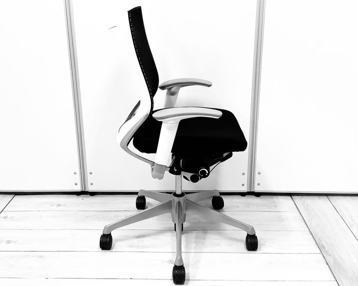 【国産メッシュチェアの代表格!オフィスの執務室、会議室におすすめ!】■オカムラ(okamura)製 バロン(Baron)チェア 肘付 ローバック 背面メッシュ ■固定肘 ■ブラック×ホワイトシェル【AD】