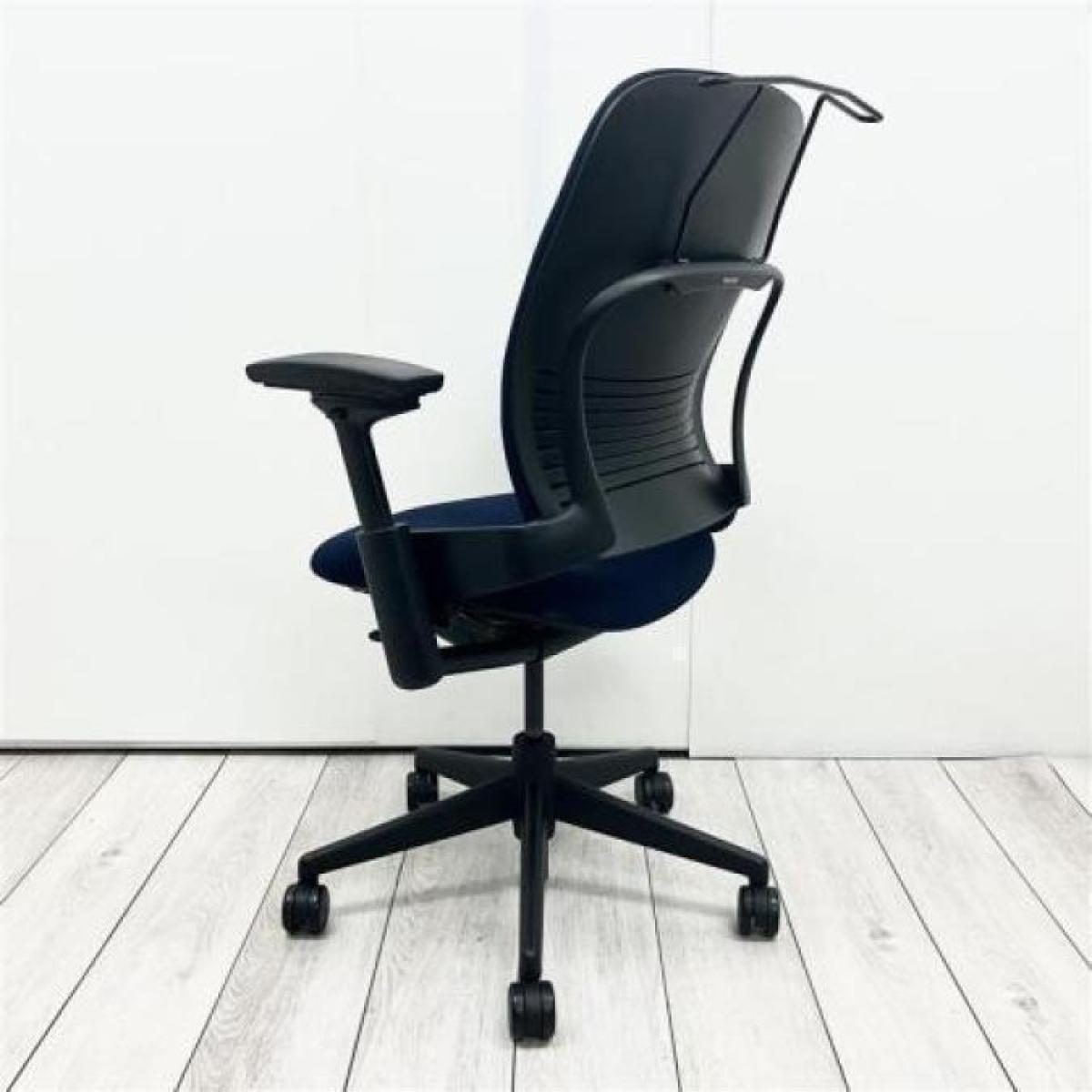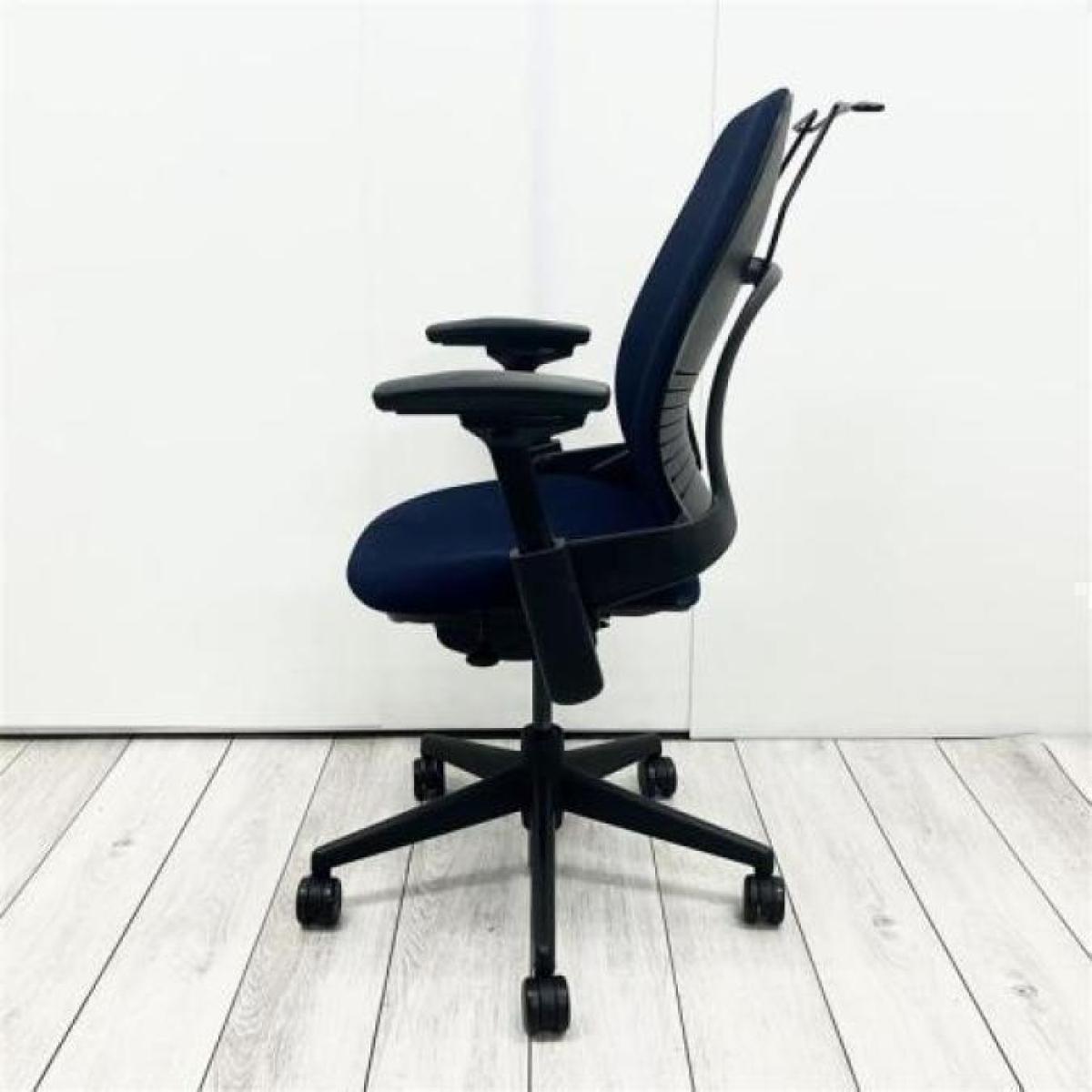 大人気シリーズ スチールケース/Steelcase リープV2/Leap V2 ネイビーブルー×ブラックフレーム 可動肘 ハンガー付き
