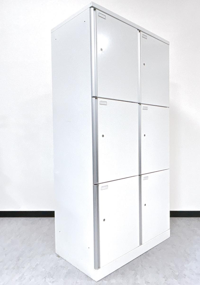 【定価約14万円】【シンプルなデザインにシルバーの取っ手がスタイリッシュな6人用ロッカー】■オカムラ/SWシリーズ ■ホワイト 6人用ロッカー 2列3段タイプ