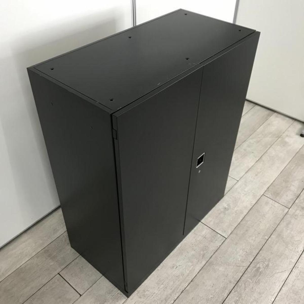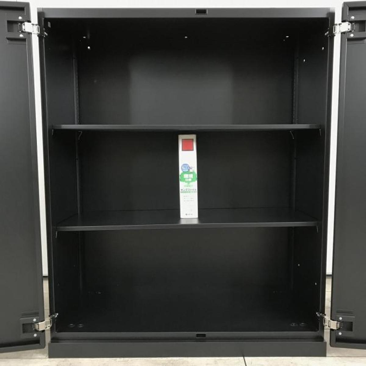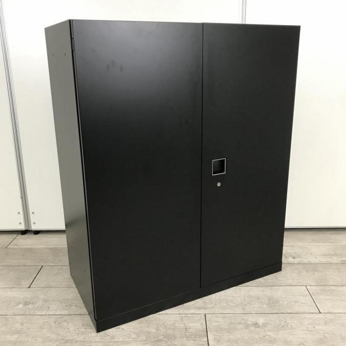【オフィスの書類をスッキリ整理!オカムラの人気シリーズ書庫!取っ手がどの方向からでも開くマルチハンドル】■オカムラ(okamura)製 レクトライン(Rectline)シリーズ 両開き書庫 ローキャビネット W900×D450×H1100mm ■ブラック ■シリンダー錠【AD】- 宇都宮サテライト