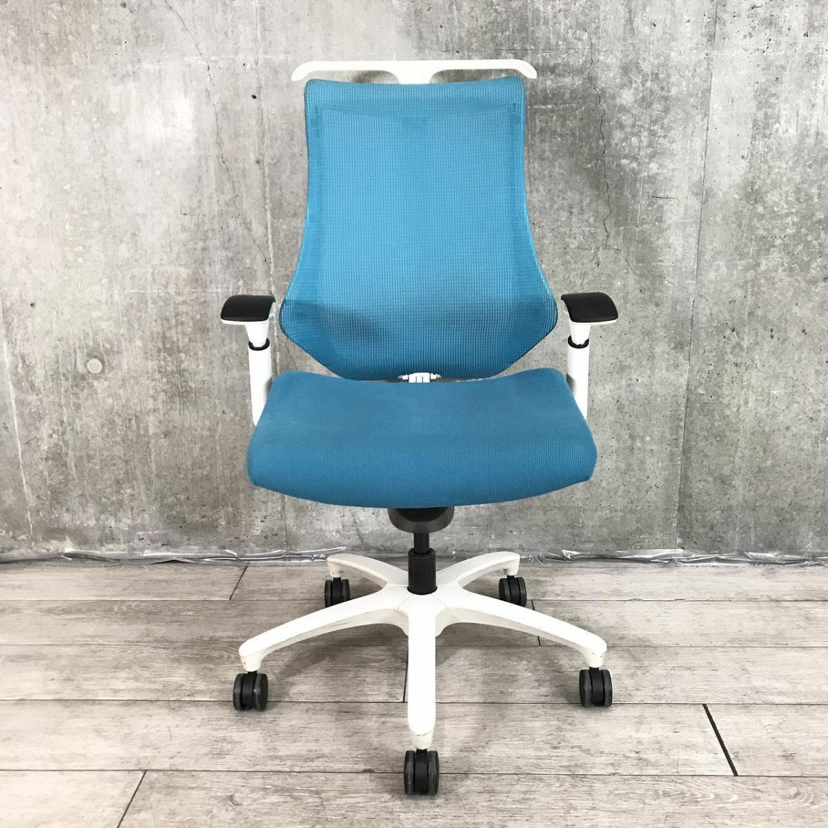 【在庫入れ替え】【姿勢の変化にフレキシブルに対応!スタイリッシュで座り心地も抜群な高機能チェア】■イトーキ(ITOKI)製 エフ(f)チェア ■肘付き ハイバック 背面メッシュ ■可動肘・ハンガー付 ■ブルー×ホワイトシェル在庫がある店舗一覧