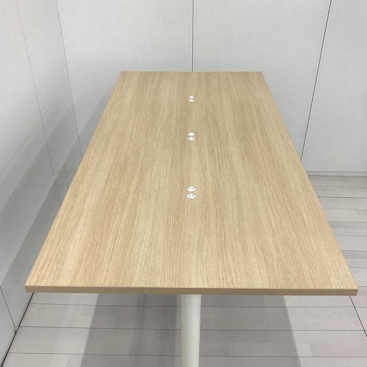 【会議室用やミーティング用におすすめ!】■オカムラ(okamura)製 ライブス(Lives Meeting Table) ミーティングテーブル W1800×D900×H1000 ■T字脚 ■コンセント付 ■天板: 木目(ナチュラル) 脚:ネオホワイト 【弊社使用欄:A01053731】- 日本橋店