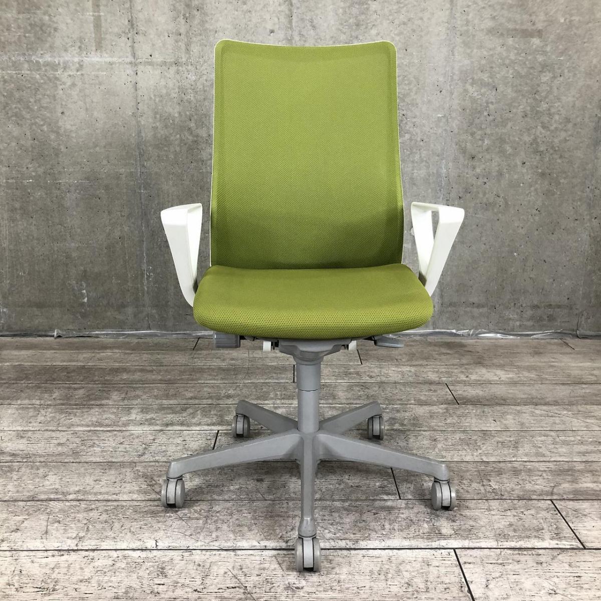 オカムラ フルーエント ハイバック メッシュ デザインアーム(固定肘) グリーン 価格・デザイン・機能性すべてよしです
