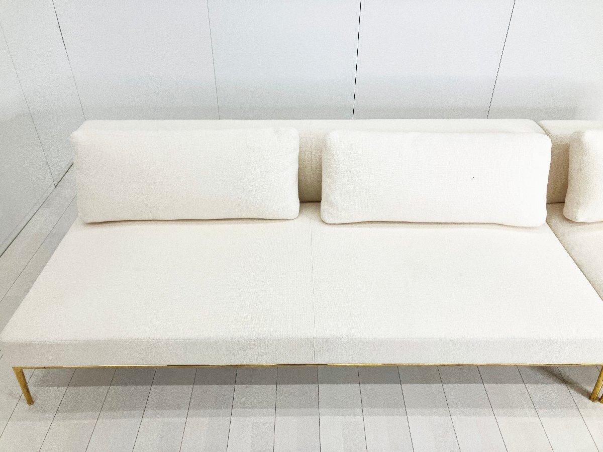 脚部には細身のメタルフレームを採用し、全体を引き締めつつ、Time & Styleらしい静かな上質感を演出。住宅空間はもちろん、ホテルやギャラリーなど、パブリック性の高い空間にも自然に馴染むソファです。