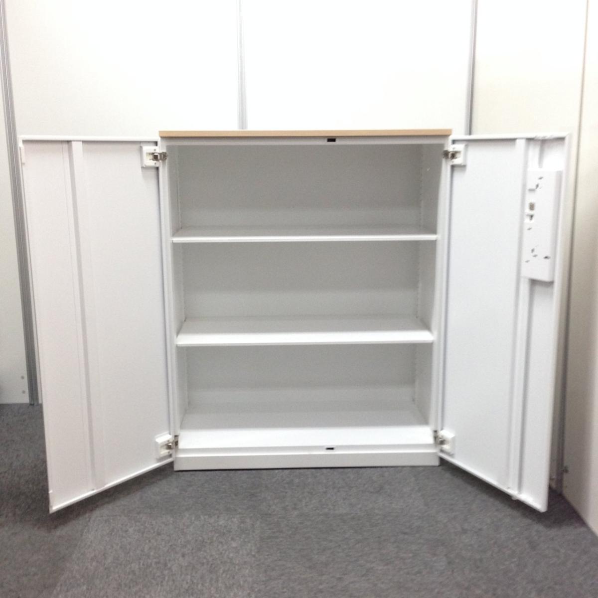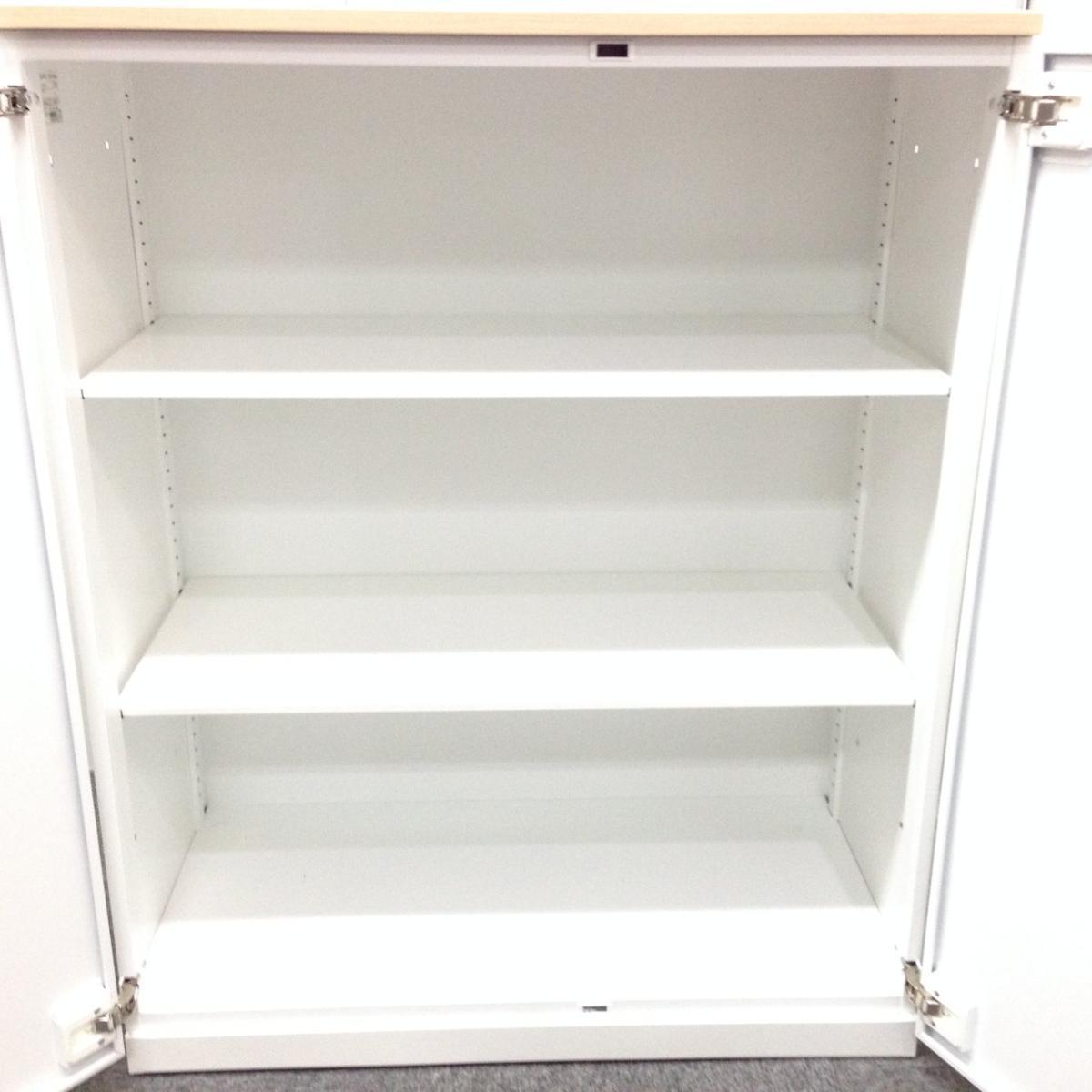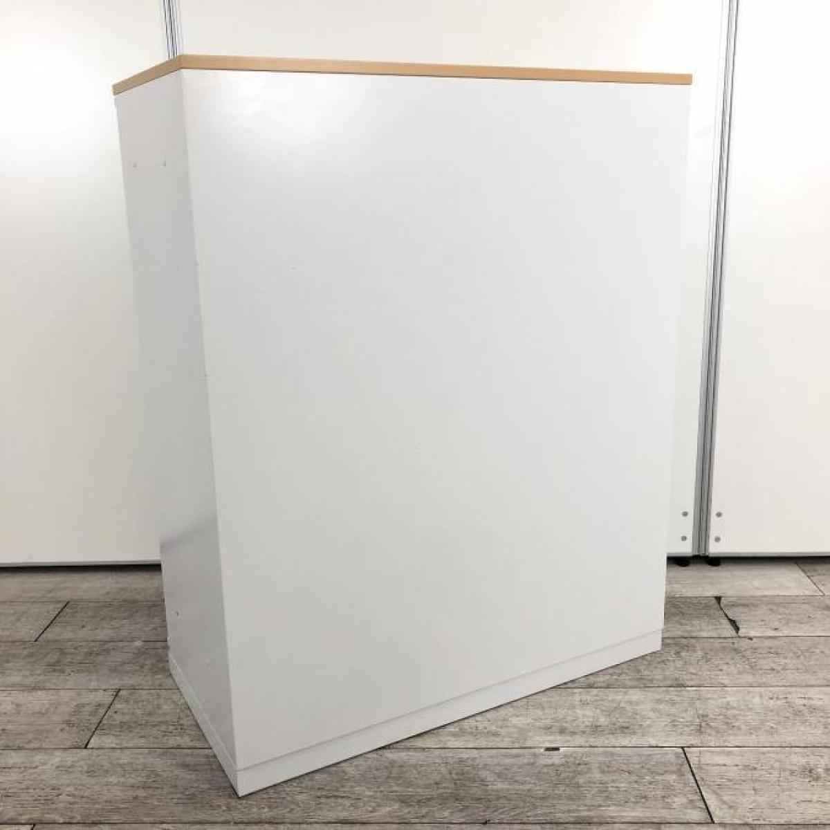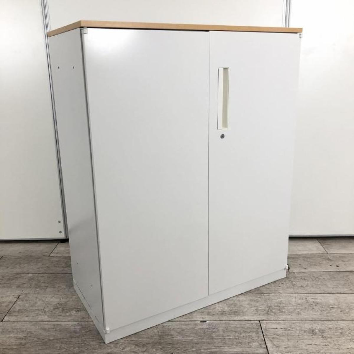【収納量抜群!観音開きタイプのキャビネット!】■コクヨ(KOKUYO)製 エディアシリーズ(EDIA) 両開き書庫 ローキャビネット 下置き用 ■ナチュラル木目天板 ■ホワイト ■シリンダー錠 【弊社使用欄:A90100726】【SN】
