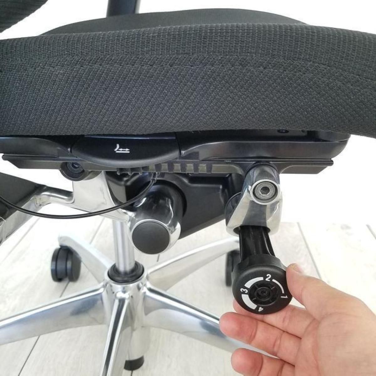- 座面の前後スライド調整レバーで操作(前後50mm分調整で)できます。(グラデーションサポートメッシュタイプを除く)