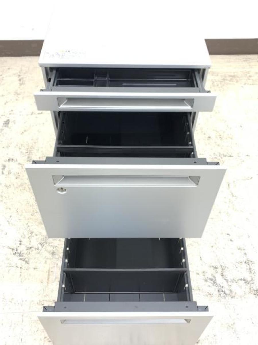 【在庫入替セール品】【メタリックなカラーリングでフリアドとの相性も抜群!シリンダー錠でセキュリティ面も安全!使い勝手のよい3段ワゴン!】■オカムラ(okamura)製 アドバンスシリーズ 3段ワゴン フリアド用 ■シルバー ■シリンダー鍵【弊社使用欄:A01021781】