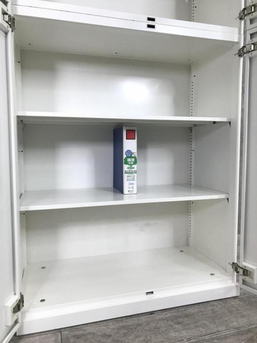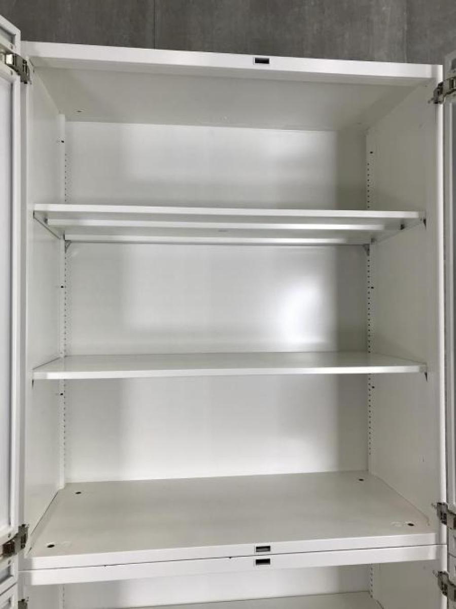 上下観音開き書庫セットが入荷!横幅・奥行がコンパクトで省スペースにもおすすめ! 清潔感のあるホワイトカラーと高いデザイン性・利便性が人気! ■オカムラ/レクトライン/ホワイト W800 D400 ヒンジ有