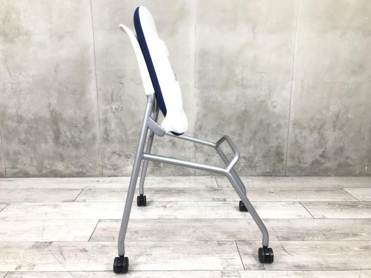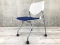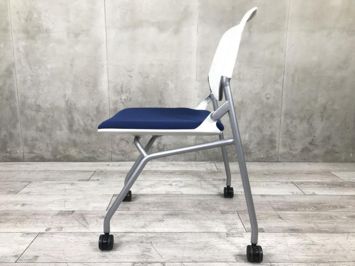 【議用・打ち合わせ用に最適のチェア!!】 ■オカムラ(okamura)製 ルナシリーズ ネスティングチェア ■背パッドなし ■ミディアムブルー×ホワイトフレーム