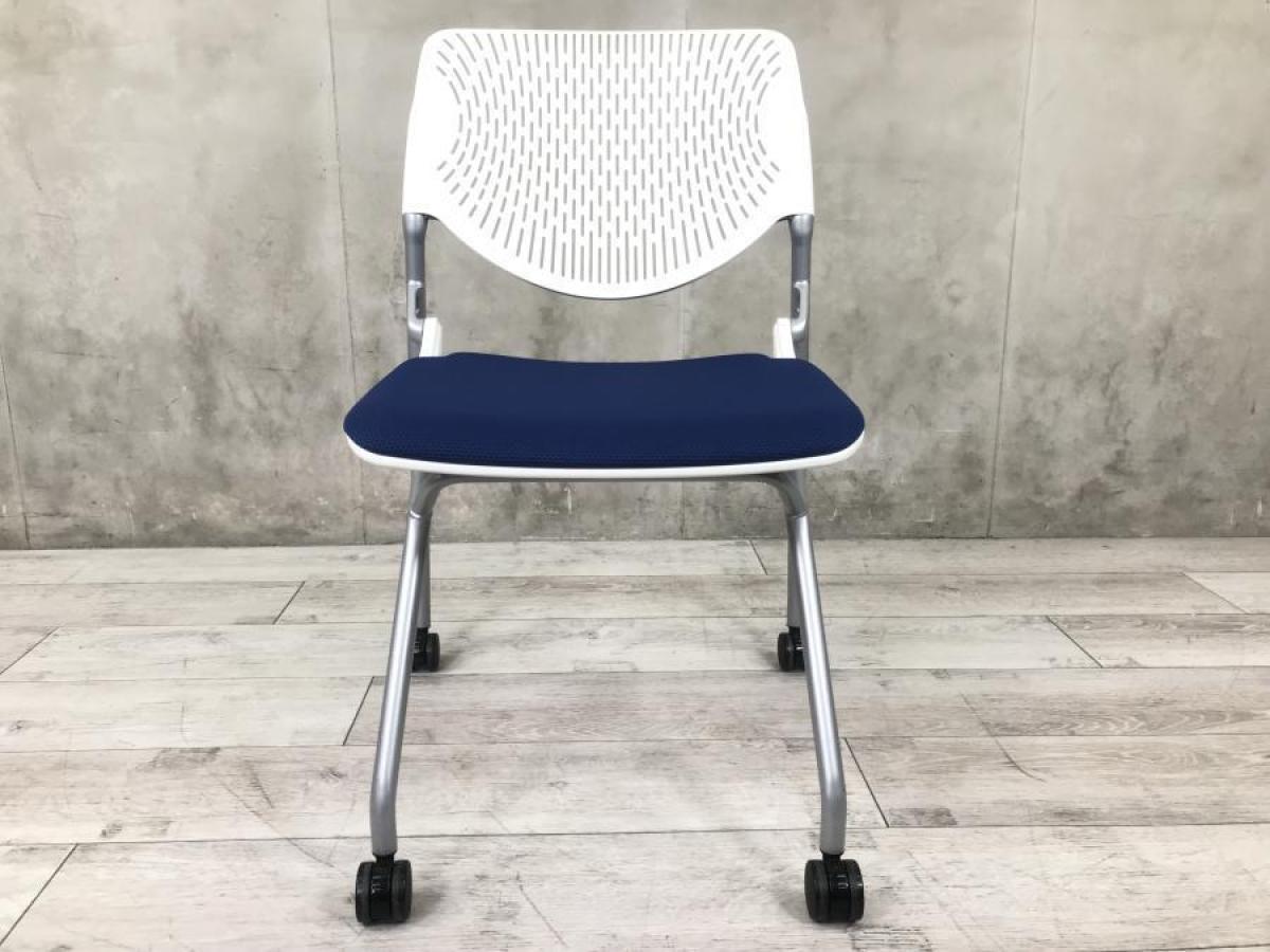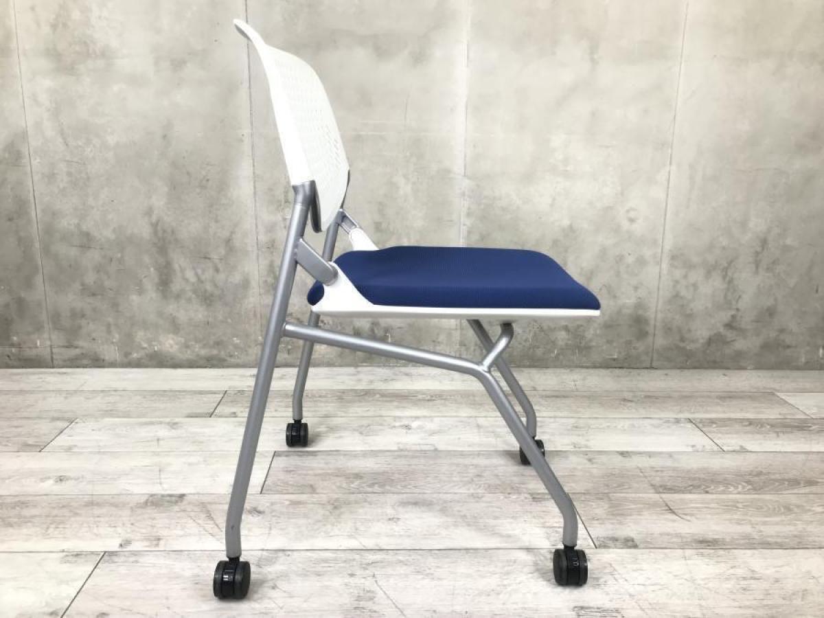 【在庫入替えセール!】【使わない時はコンパクトに収納!】人気の色のネスティングチェア! ■オカムラ/ルナ/ブルー【AD】- 足立・葛飾店