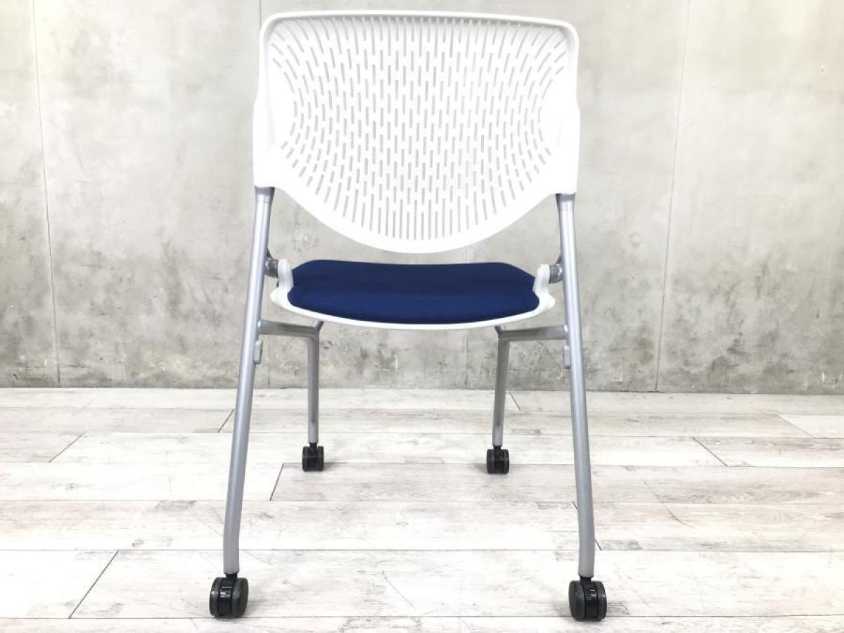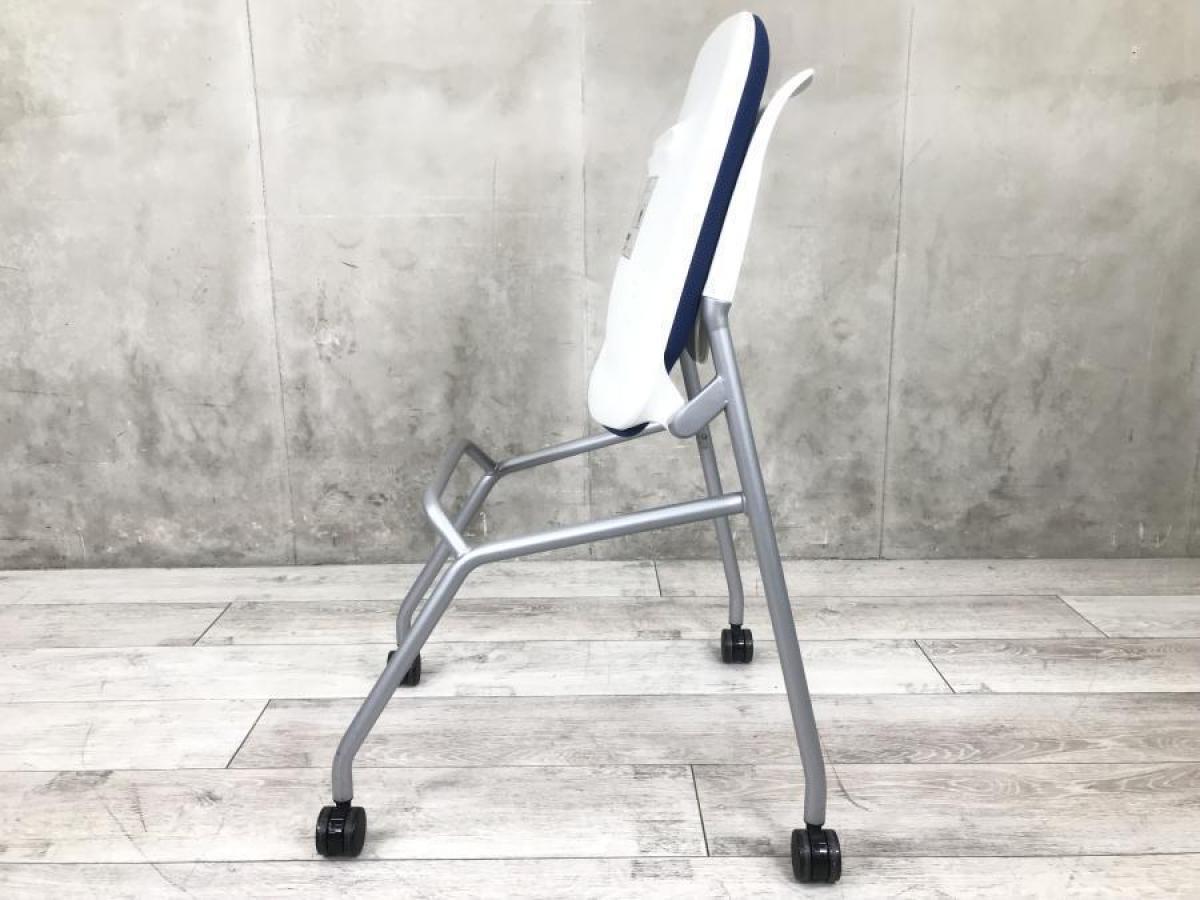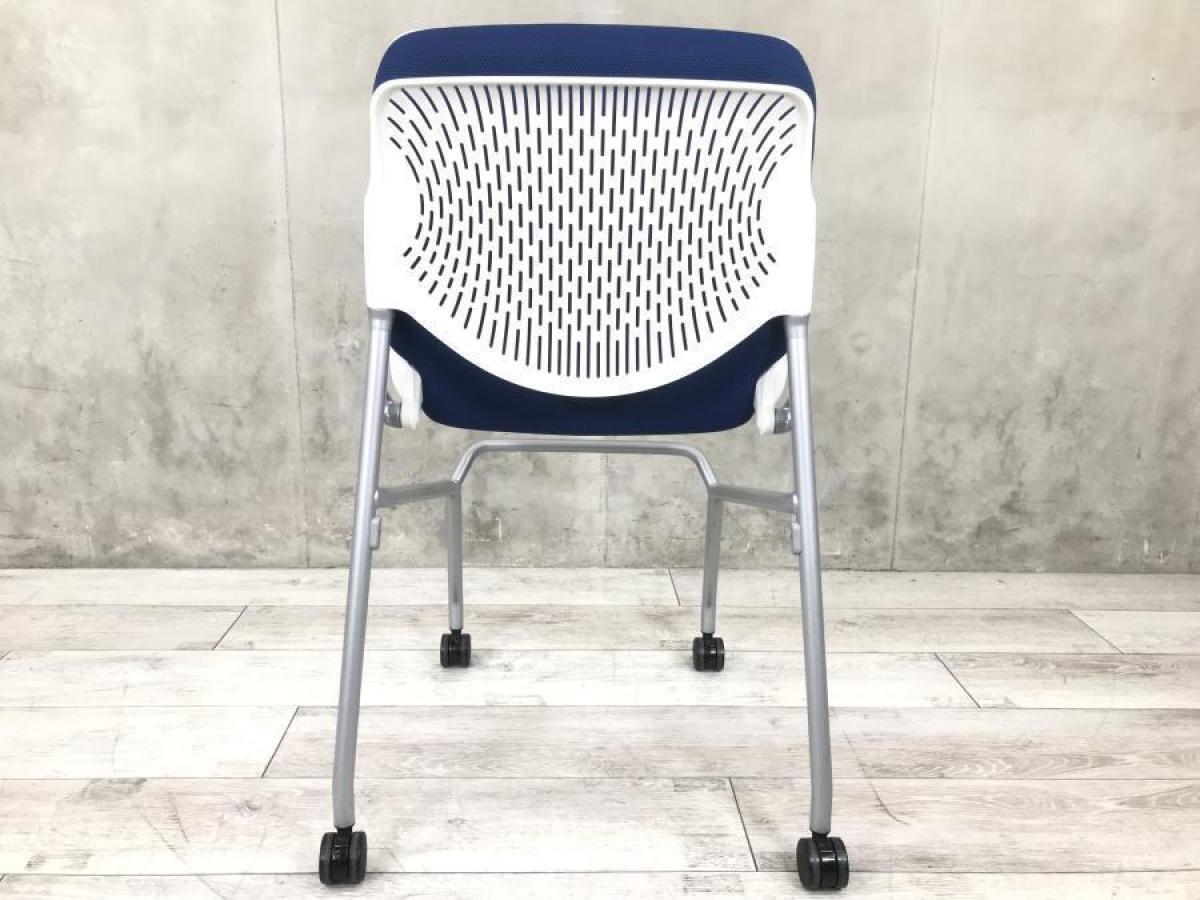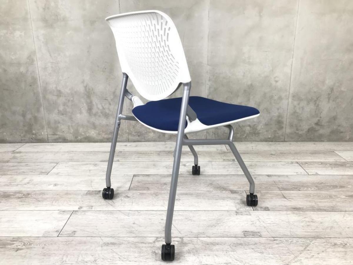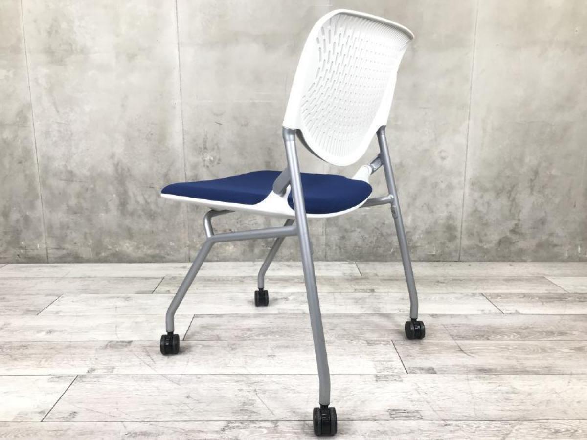 【背のスリットデザインはベンディング機能!シンプルなデザインで使いやすいミーティングチェア!】■オカムラ(okamura)製 ルナ(Runa)チェア ネスティングチェア ミーティングチェア キャスター付 ■背面樹脂メッシュ:ホワイト/座面:ネイビーブルー【使わない時は平行に重ねて収納!】
