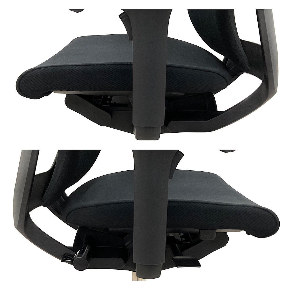 - 座面下のレバー操作により、座面を50mmのストローク(16.7mmピッチ)で好みの位置に調節できます。体格や作業姿勢に合わせたポジション設定が行えます。