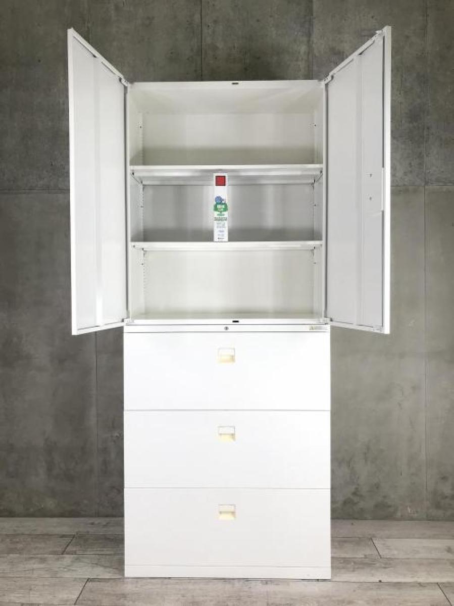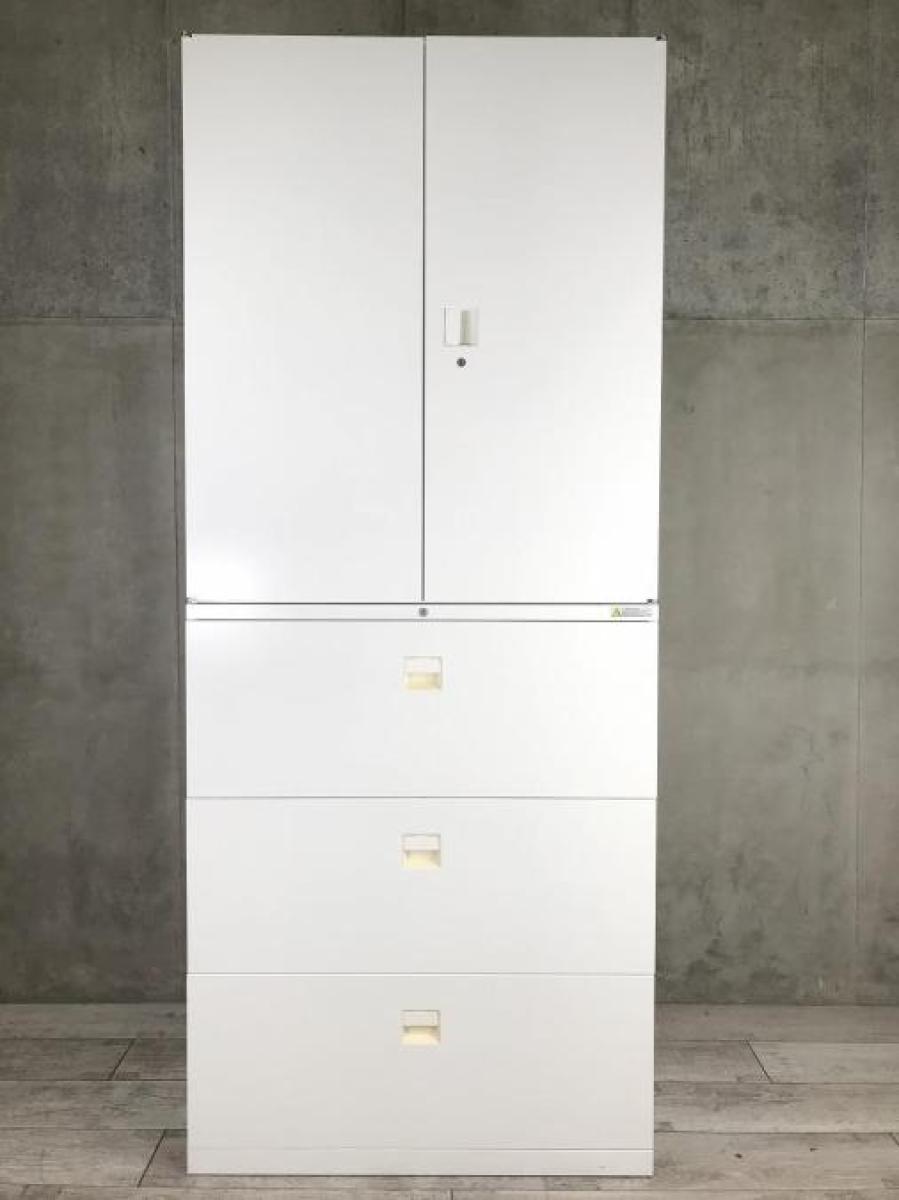 【オフィスの人気シリーズ!観音開き+引き出し仕様!書類整理におすすめ!】/オススメ(おすすめ) /人気商品【弊社使用欄:A01058768 / A01058766】■オカムラ(okamura)製 SAデュオライン 書庫セット 両開き+3段ラテラル ■シリンダー錠 ■ホワイト