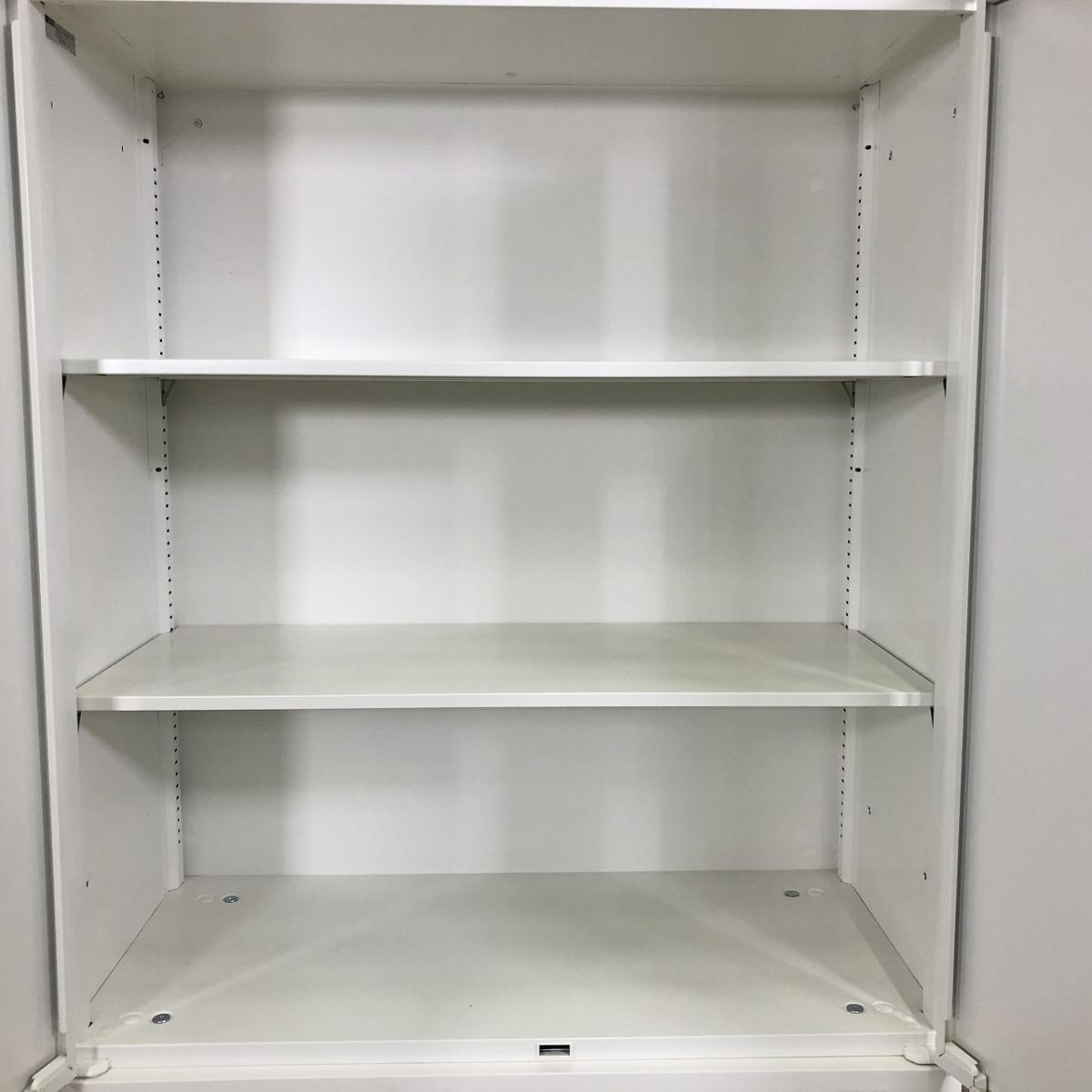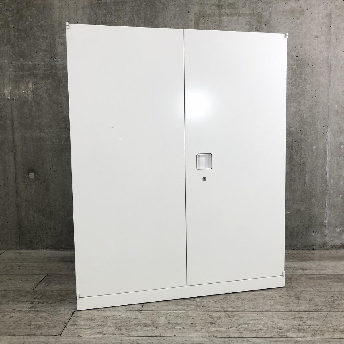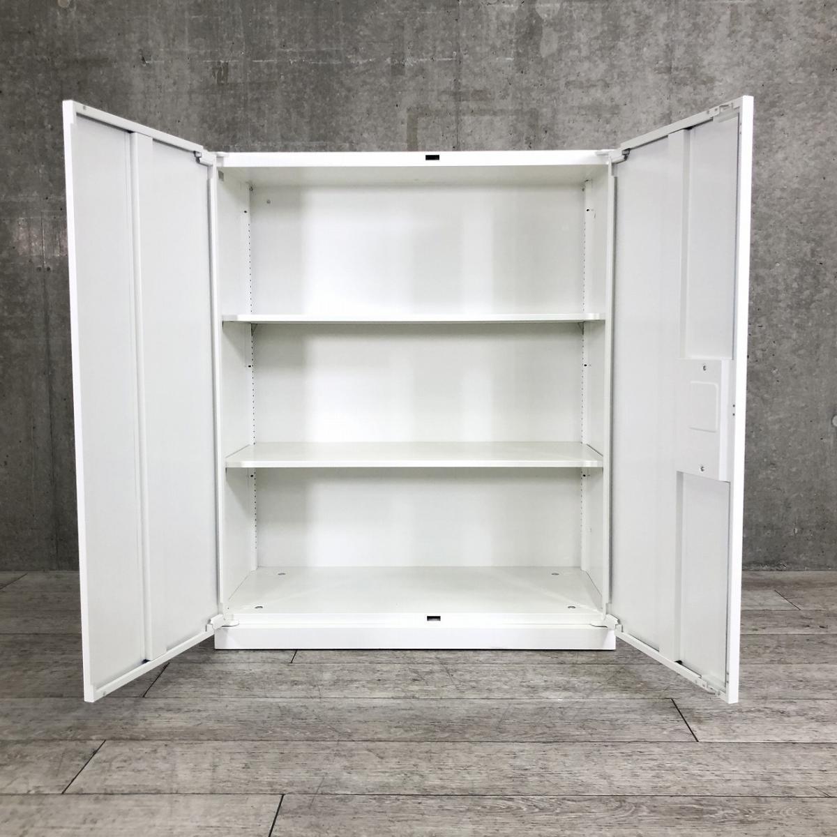 ■オカムラ(okamura)製 ■レクトラインシリーズ ■ローキャビネット ■両開き書庫 ■ホワイト ■シリンダー錠 【弊社使用欄:A01054680】【KN】