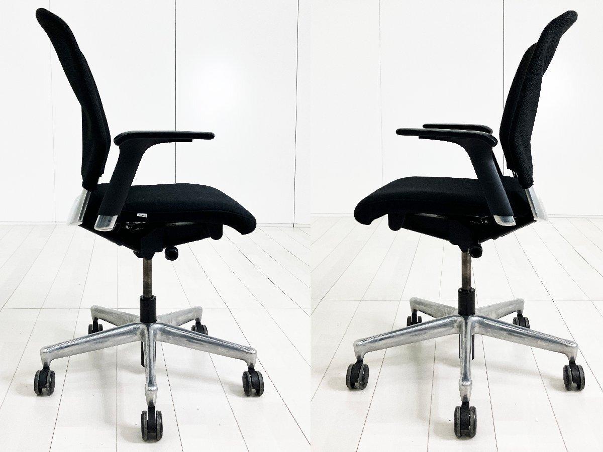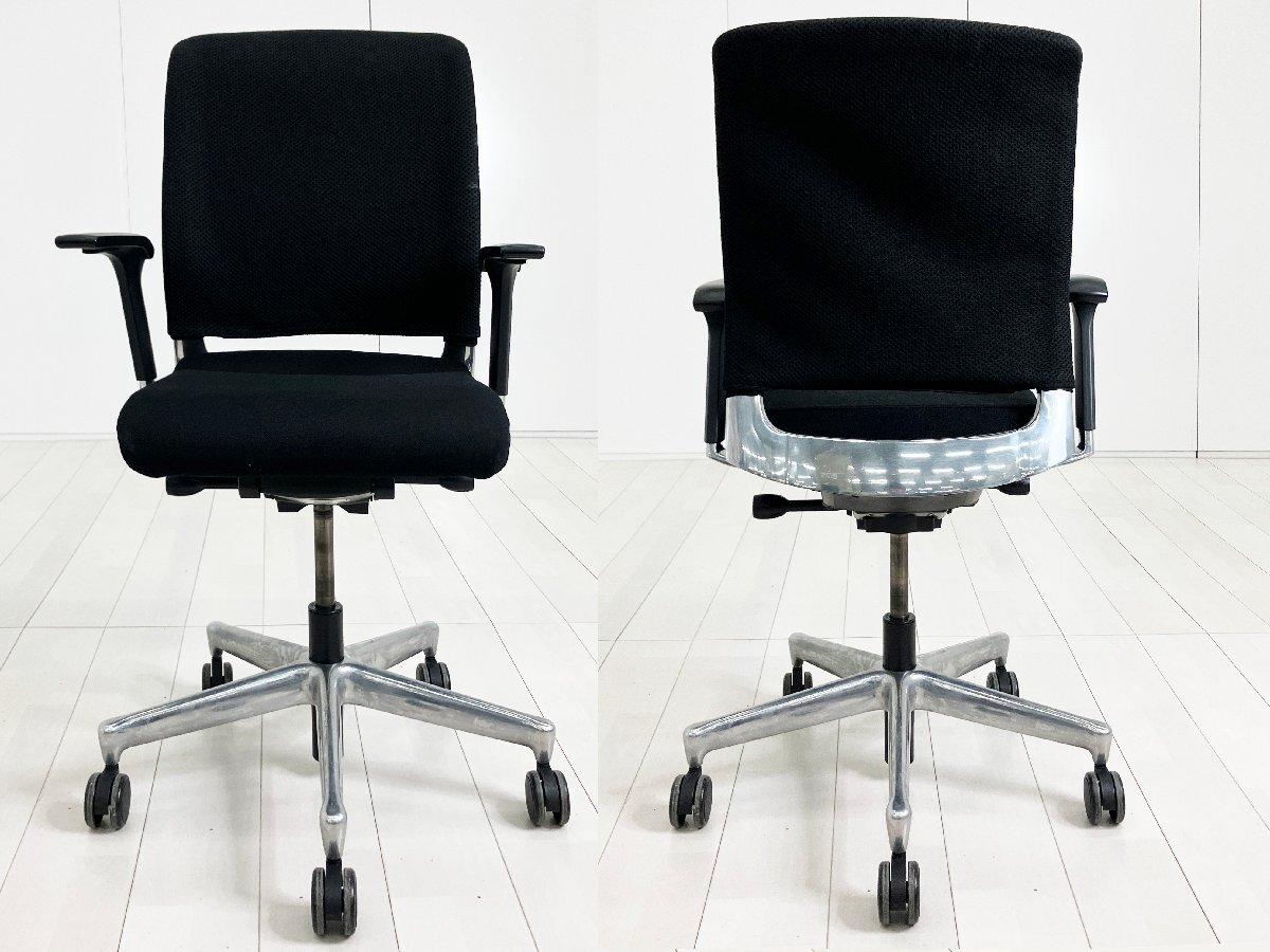 フレームとベースは美しいアルミポリッシュ仕上げ。リクライニング機能があり、リクライニングの角度に応じてシート角度がベストポジションへと連動します。また、ユーザーの体格に合わせ、リクライニング強度を設定することができます。時代を超えたデザインは、ダイナミックでありながらジャーマンデザインの本流を引き継いでいます。