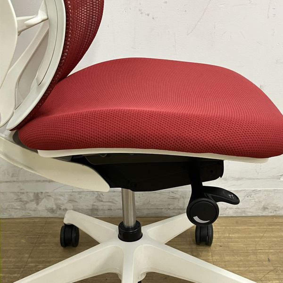 【在庫入替セール】オカムラ シルフィー ハイバックモデル 肘無しチェア レッド×ホワイトフレーム 前傾機能付きの人気シリーズ 在宅ワークにも最適- 名古屋千種店