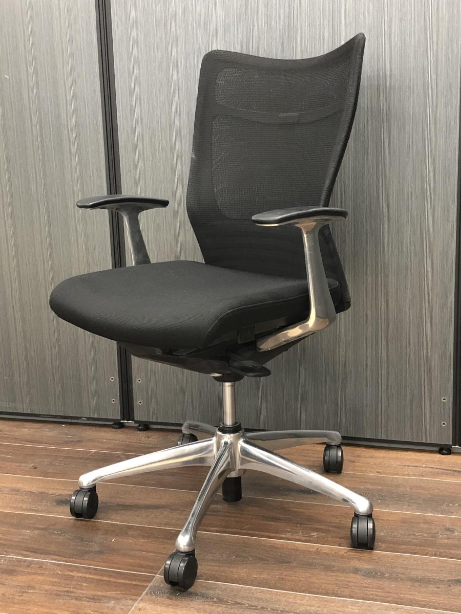 【快適な座り心地に高級感のあるデザイン!】■オカムラ製 フィーゴメッシュチェア 肘付 ブラック ■背あてのしなやかな曲線が背中にフィット!★- 川崎店