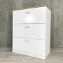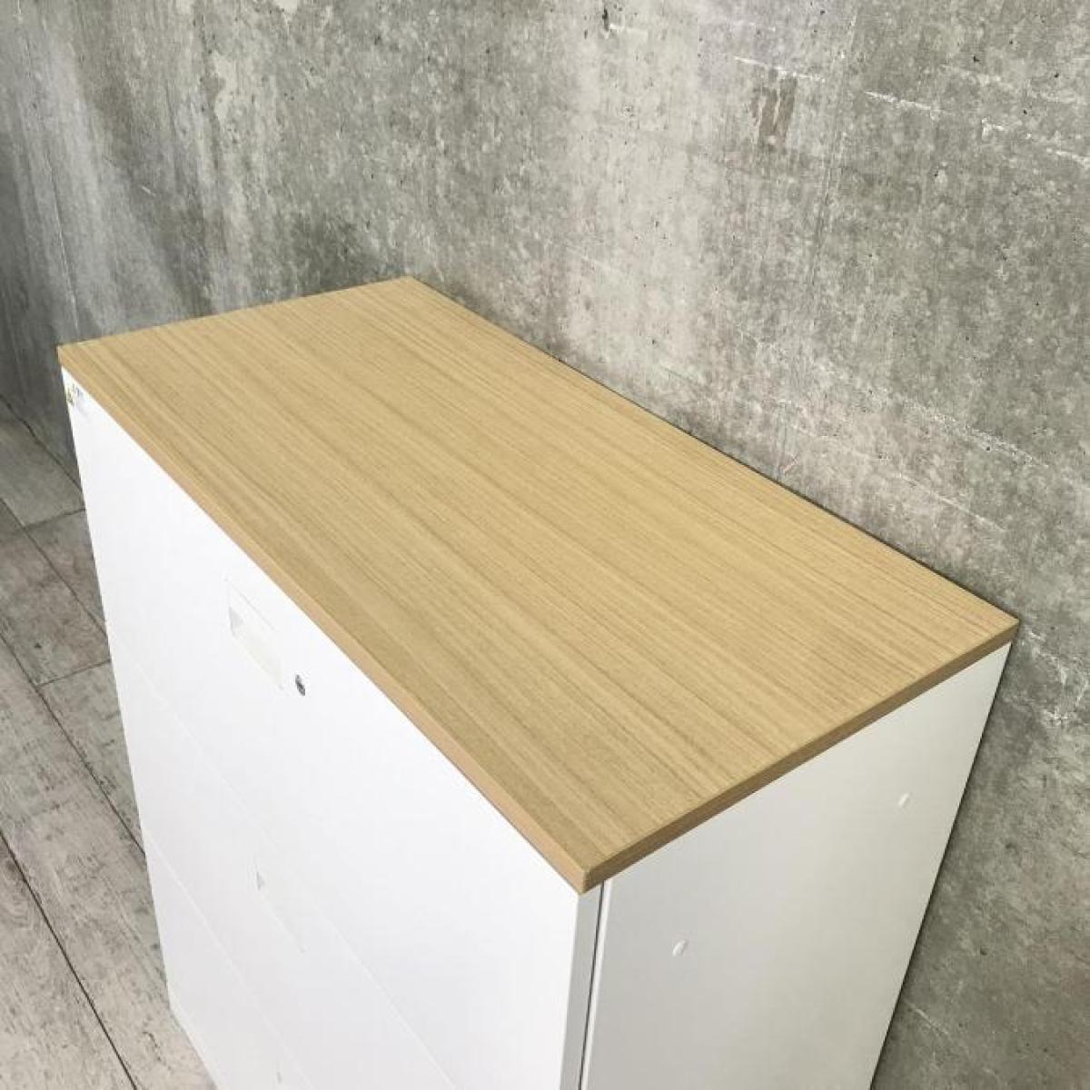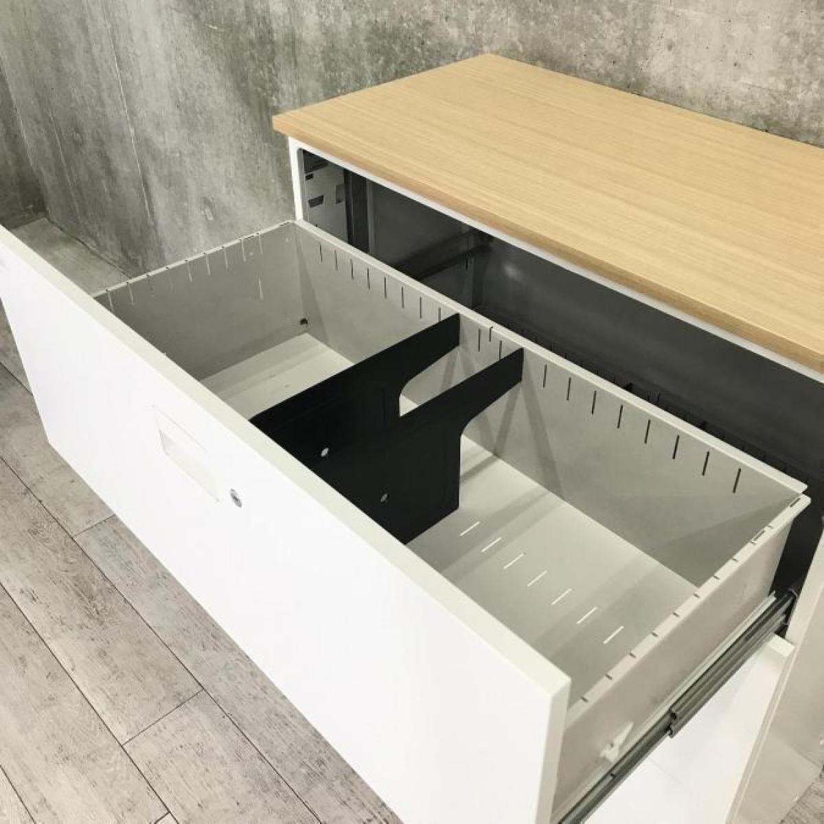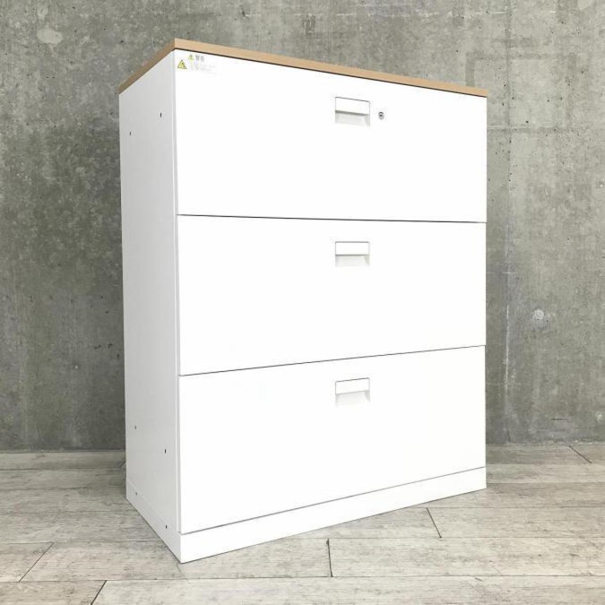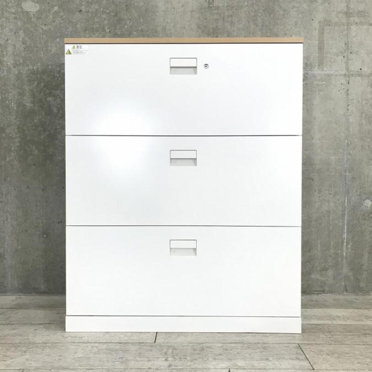 【大きく開いて収納物が見やすく、収納力も抜群!フラットで美しいホワイト書庫!】■イトーキ(ITOKI)製 エスキャビネット(eS)シリーズ 3段ラテラル ローキャビネット H1120㎜ ■天板:木目ナチュラル ■ホワイト ■シリンダー錠【弊社使用欄:A01042586】【ID】- 渋谷サテライト