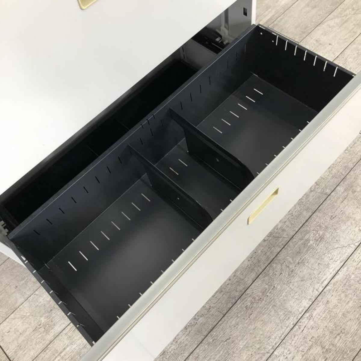 - 一部不具合ありそ引出の開閉不可、施錠不可、棚板無しといったの書庫の本来の効用を果たすための機能以外の一部が使用不可(例、扉、引出の開閉がしづらいなどがある。 )