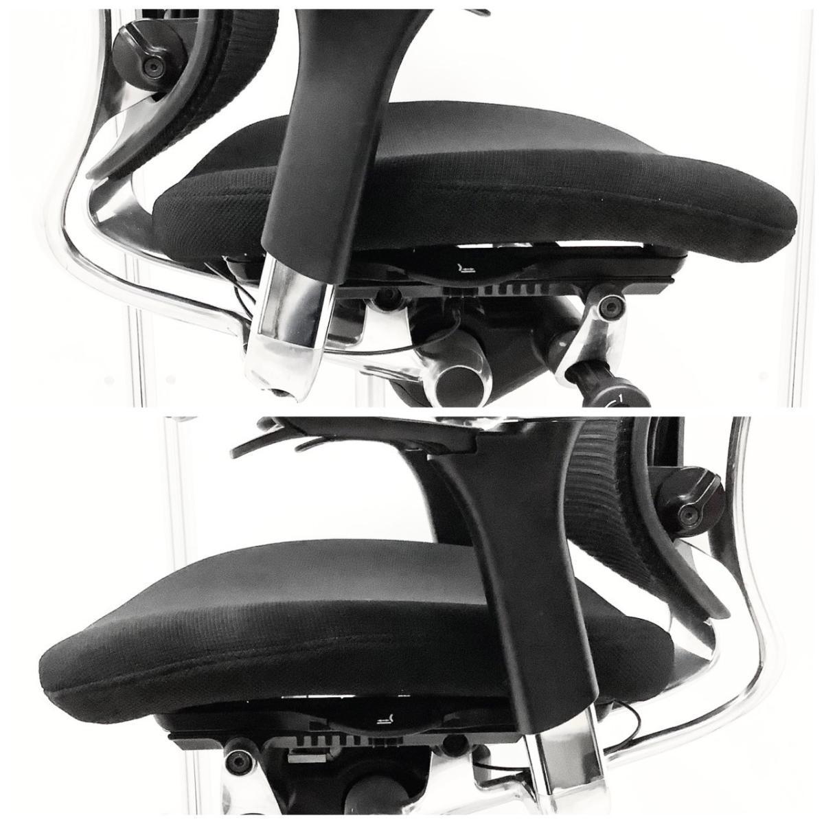 - 座面の前後スライド調整レバーで操作(前後50mm分調整で)できます。(グラデーションサポートメッシュタイプを除く)