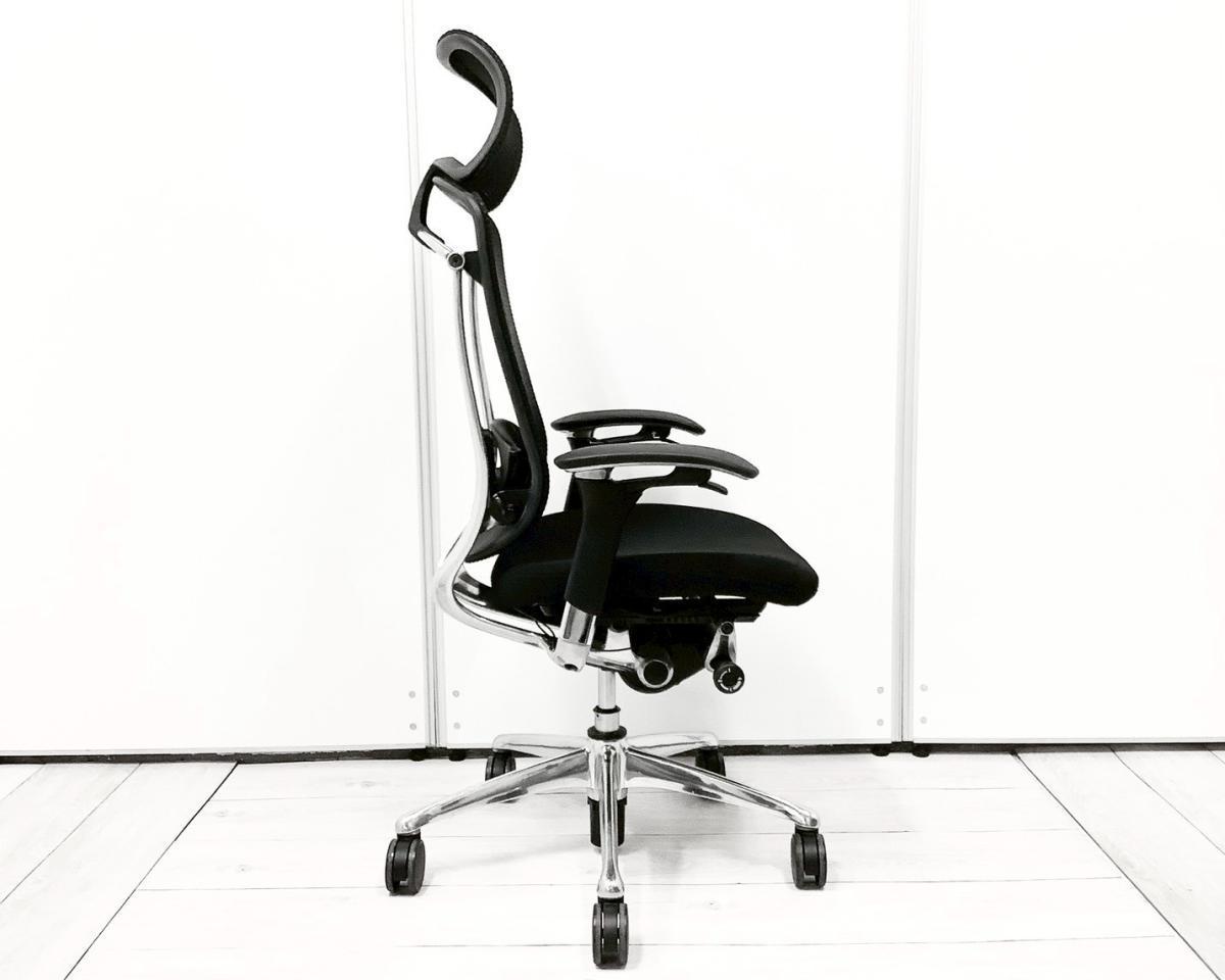 【世界で認められた革新的タスクチェア!人間工学に基づいた快適な座り心地を実現!】■オカムラ(okamura)製 コンテッサチェア 肘付ハイバック ■可動肘・ハンガー・ランバーサポート付 ■背面メッシュ ■ブラック