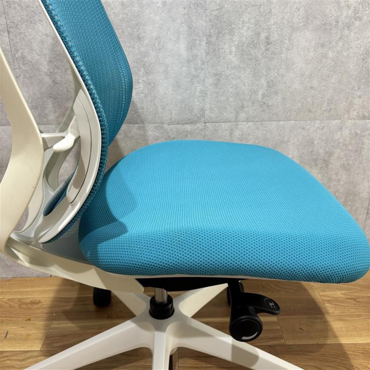 【西】~快適とデザインを両立~【訳アリ】【オカムラ】【シルフィー】【ライトブルー】【前傾姿勢】【フレーム・脚ホワイト】【チェア】【椅子】【イス】【事務椅子】【格安】【安い】【メーカー】【レイアウト変更】【模様替え】【福岡オフィス家具】【福岡中古家具】【中古チェア】【中古椅子】