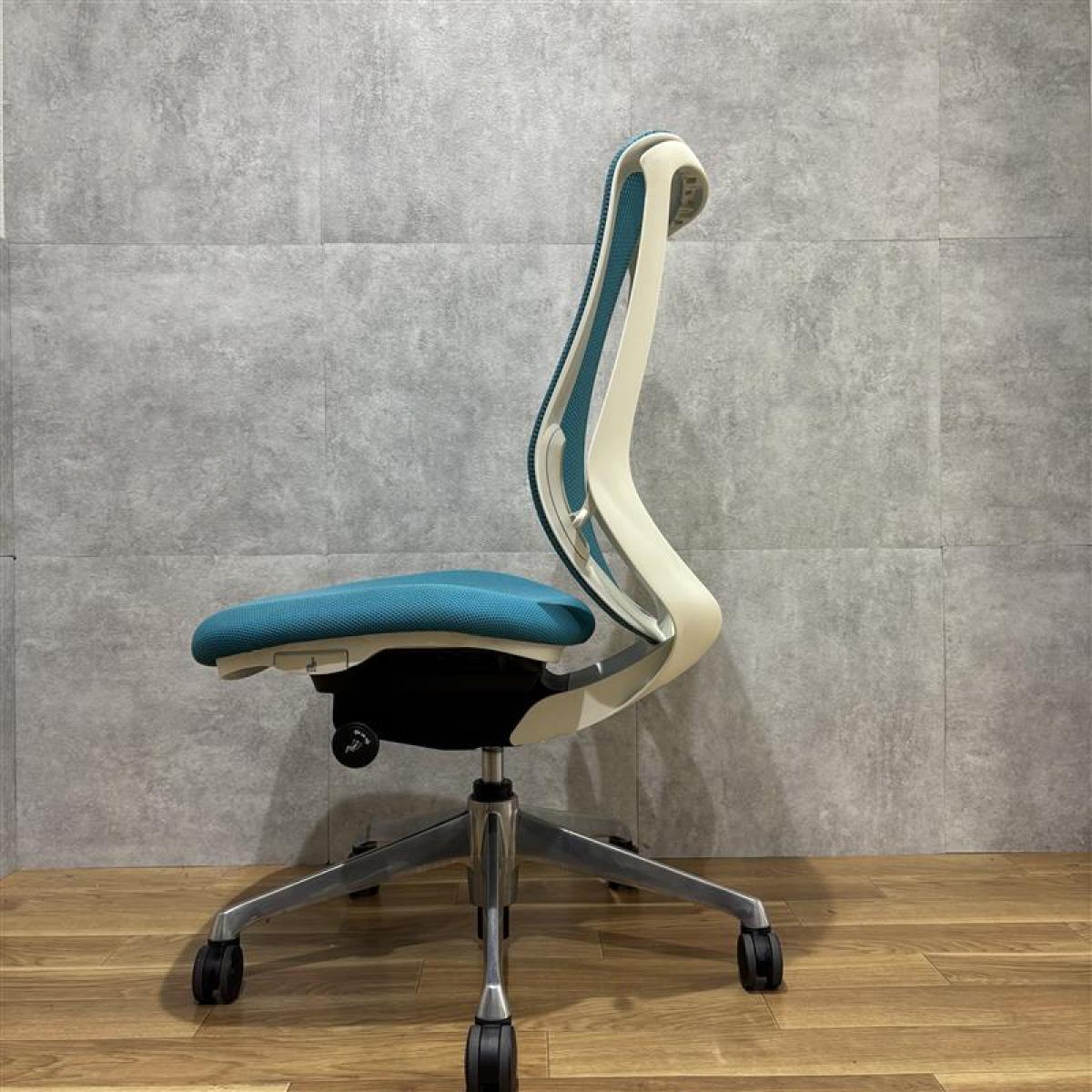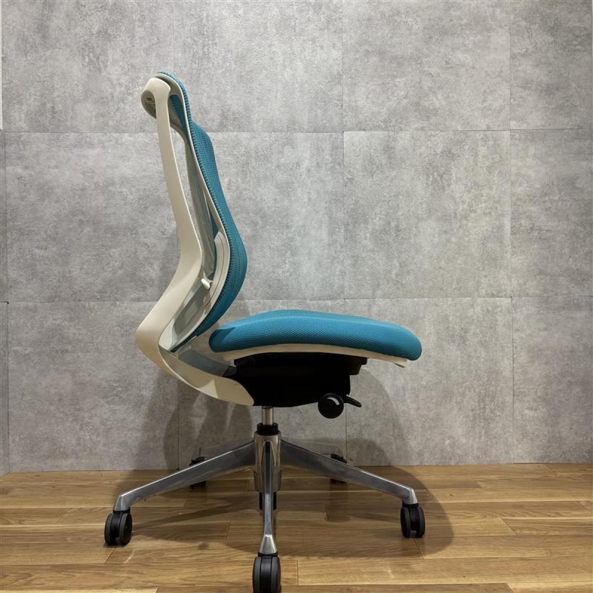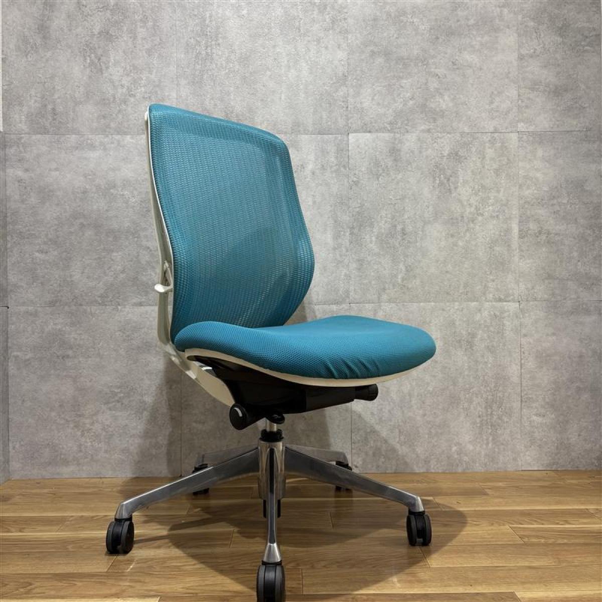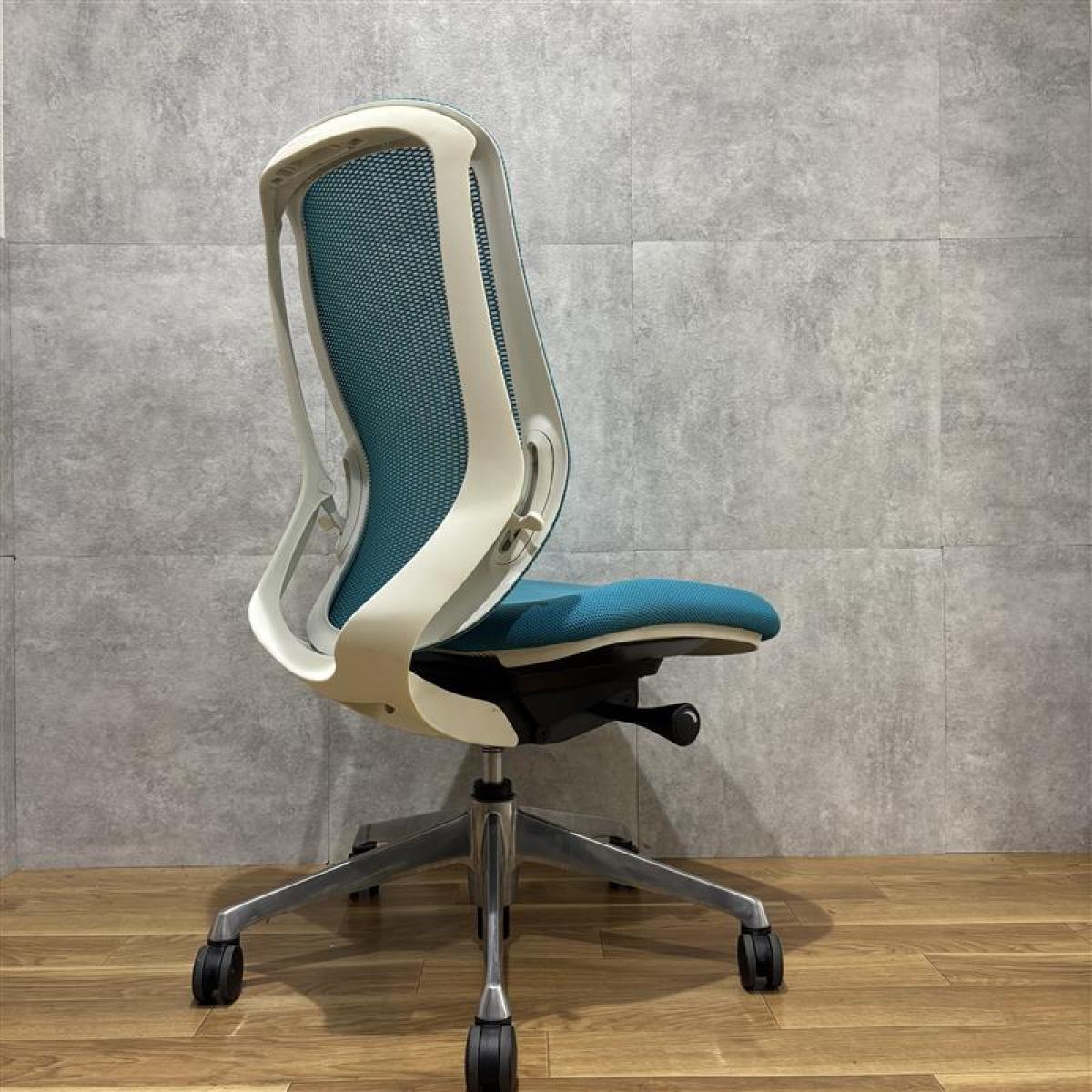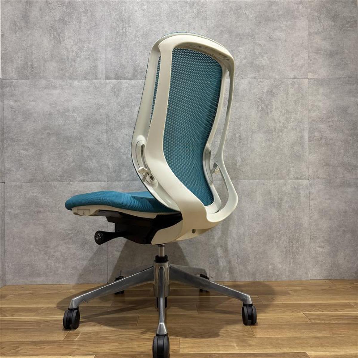 【在庫入替】【オカムラの大人気シリーズ!】■オカムラ/シルフィーチェア/ブルーグリーン×ホワイトシェル 肘無ハイバック ■背面メッシュ【K2】